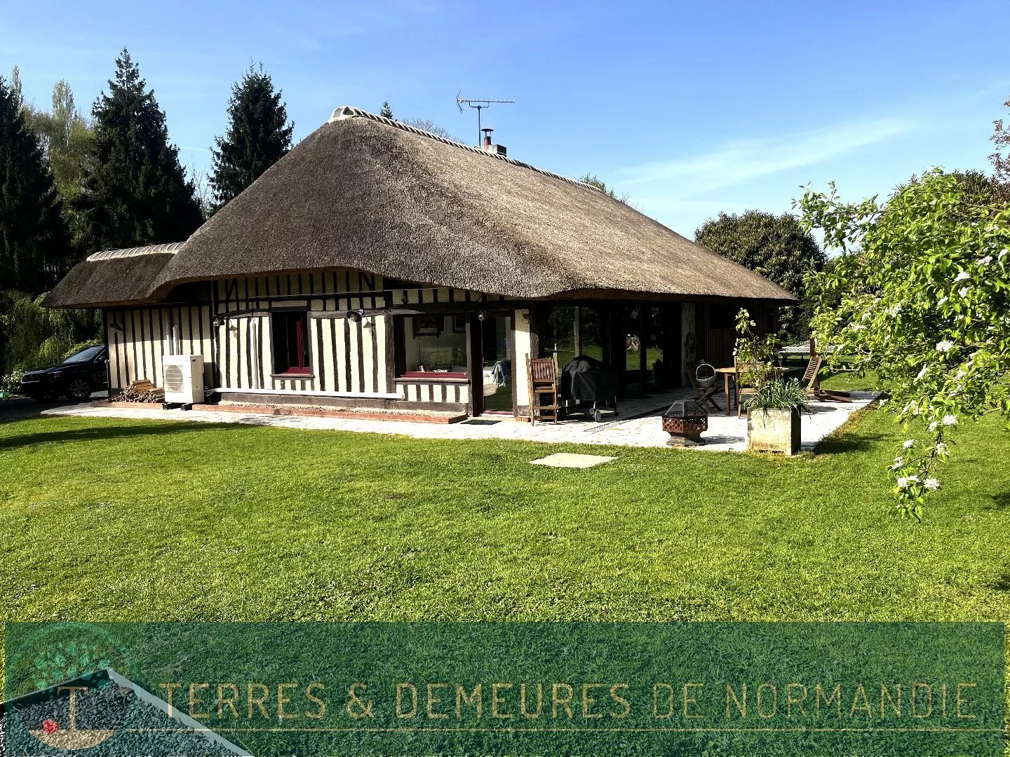 605 000 €Venez découvrir cette superbe chaumière restaurée avec goût et des matériaux de qualité, à seulement 5 min du charmant village de Cormeilles (27260), 15 min de Pont-lÉvêque (14130) et 30 min de la côte Fleurie (14800 Deauville), dans un parc arboré denviron 1 ha. Cette demeure normande en colombages, sous couverture de chaume, vous offre une superficie denviron 210 m². Elle comprend, en rez-de-chaussée : une large entrée, un vaste salon-séjour avec cheminée insert et un espace bureau pour une vaste pièce de vie denviron 50 m², une salle de jeux (billard), une grande cuisine aménagée et équipée, très lumineuse, qui donne accès au jardin, deux spacieuses chambres, un WC et une salle de bains avec buanderie. À létage, vous trouverez un large couloir qui donne accès à trois agréables chambres, un WC et une salle deau avec douche à litalienne. Vous bénéficiez également dun petit grenier pour votre stockage. À lextérieur, cette propriété séduit par son environnement privilégié : vous trouverez un jacuzzi pour la détente, une dépendance à usage de garage, un chalet, un abri de jardin et deux terrasses pour profiter de lespace en plein air, sans vis-à-vis. Cette chaumière ravissante est une véritable invitation à profiter dun cadre de vie paisible et raffiné, mêlant charme et confort moderne. Pour toute information ou pour organiser une visite, contactez notre agence Terres et Demeures de Normandie à Cormeilles (27260), dans le Pays dAuge. AGENT COMMERCIAL : Pieter MERCKX - RSAC 840 190 938 Montant estimé des dépenses annuelles d'énergie pour un usage standard : entre 2 480 et 3 460 par an. Prix moyens des énergies indexés sur les années 2021 2022 2023 (abonnement compris). Nous vous rappelons que suite à l'article l.561-5 du code monétaire et financier, la copie de la pièce d'identité de tous les visiteurs vous sera demandée avant la visite. Honoraires : 5 % TTC à la charge de lacquéreur Prix hors honoraires dagence : 600 000