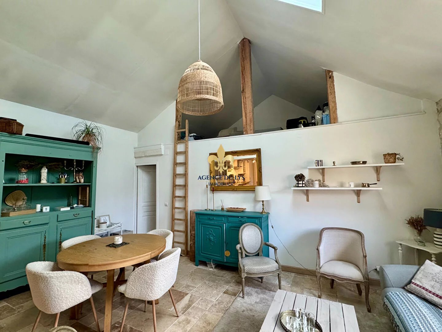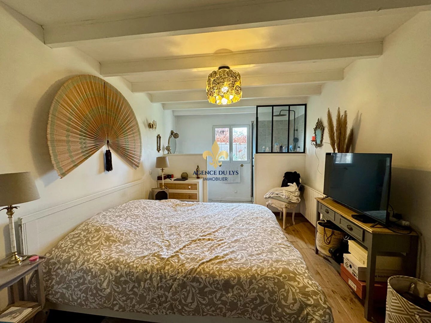 Entièrement rénovée avec goût, elle se compose d'une entrée donnant sur une pièce de vie avec séjour/salle à manger avec poêle à granulés, mezzanine, cuisine américaine équipée, salon avec cheminée à insert, deux chambres en rez-de-chaussée dont une avec dressing et douche, salle de bains, wc indépendant. A l'étage : 1 chambre avec douche et un espace de stockage. Poutres apparentes sablées, pierres apparentes... !