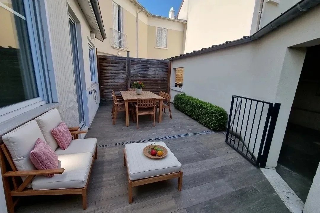 A 5min du centre ville, à proximité des bords de Seine et des écoles, arrêt de bus immédiat, jolie maison alliant cachet de l'ancien et modernité (entièrement rénovée en 2017), elle dispose d'une entrée avec WC séparé - lave-mains, donnant sur un spacieux séjour cheminée triple-exposition, avec une grande cuisine équipée, le tout de plain-pied avec accès à la terrasse et au grand garage double (grand stockage possible). Au 1er étage : deux chambres dont une suite parentale avec salle de douche/WC et dressing (parquets anciens); au 2nd : deux belles chambres (tomettes anciennes), une grande salle de bains avec WC ; un sous-sol : une cave à vins et grande cave. Refaite à neuf en 2017, elle dispose de tous les éléments de confort, à savoir double vitrage thermique et acoustique, volets roulants électriques, garage avec porte motorisée.