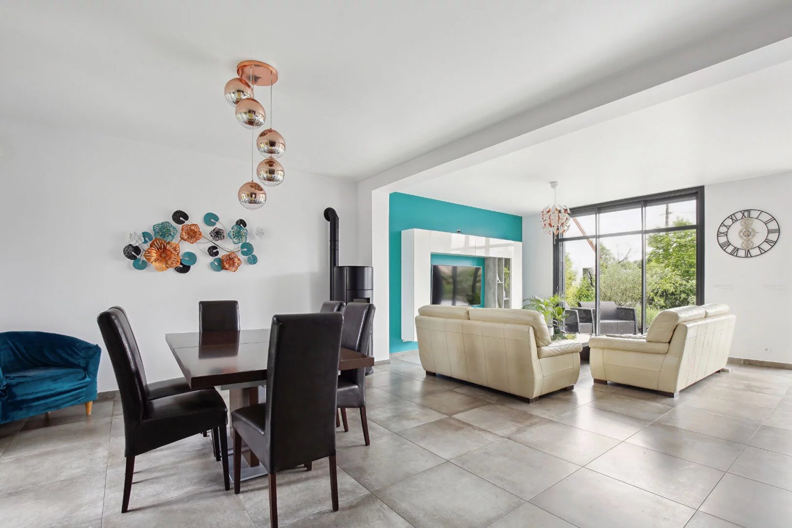 Dès l''entrée vous serez séduits par un bel espace de vie de 65 m² comprenant le salon avec un poêle à granulés et la cuisine équipée ouverte avec un îlot central. Les grandes ouvertures qui s'étirent jusqu'au plafond offrent une luminosité abondante, créant un espace convivial qui s'ouvre sur la terrasse et le jardin. On trouve également à ce niveau un WC et une chambre parentale spacieuse de 36 m² avec une salle d'eau et un dressing.
