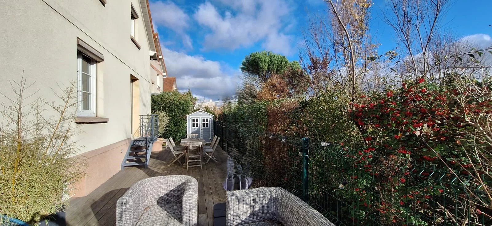 1 190 000 €A 17 min à pieds du RER, venez découvrir cette maison familiale de 156 m² entièrement rénovée en 2019 sur 313 m² de parcelle. Au rez-de-chaussée, une entrée, un séjour traversant est/ouest donnant sur la terrasse, une cuisine séparée, une chambre ainsi qu’une salle d’eau avec toilettes. L’étage est composé d'une très belle suite parentale avec salle de douche, de deux chambres, d'une salle de bains, de toilettes séparées et d'un espace de rangement dans les combles. Enfin, en entresol, ce bien offre une entrée indépendante, une petite chambre, un espace bureau, une buanderie/chaufferie et une belle cave à vin. Maison idéale pour les familles, à deux pas des écoles, proche du centre ville et des ballades aux bords de Seine.