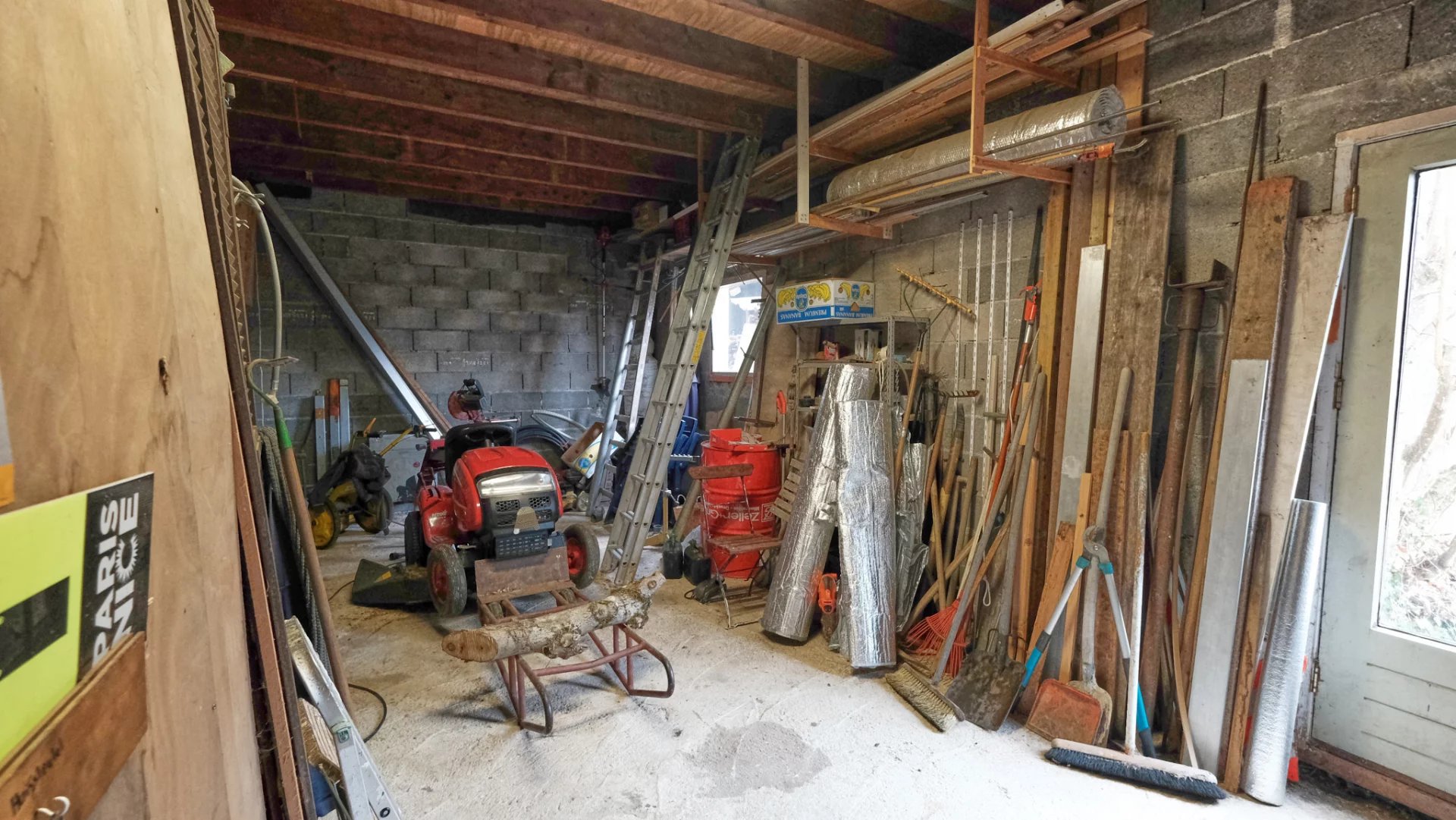 Dans l'allée derrière le portail d'entrée en fer, il y a un grand parking et en face du garage il y a un parking avec emplacement où un grand camping-car peut être garé.