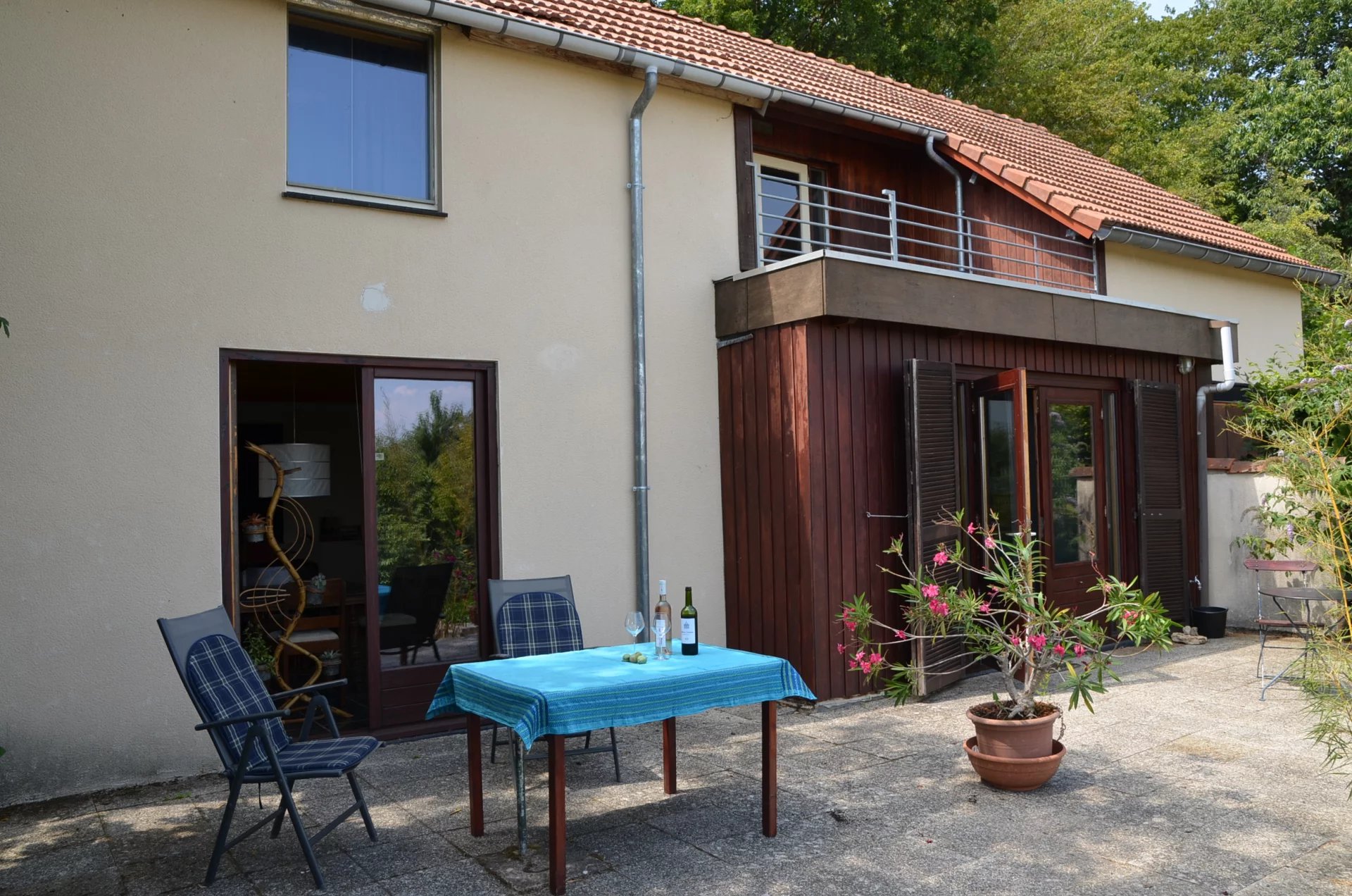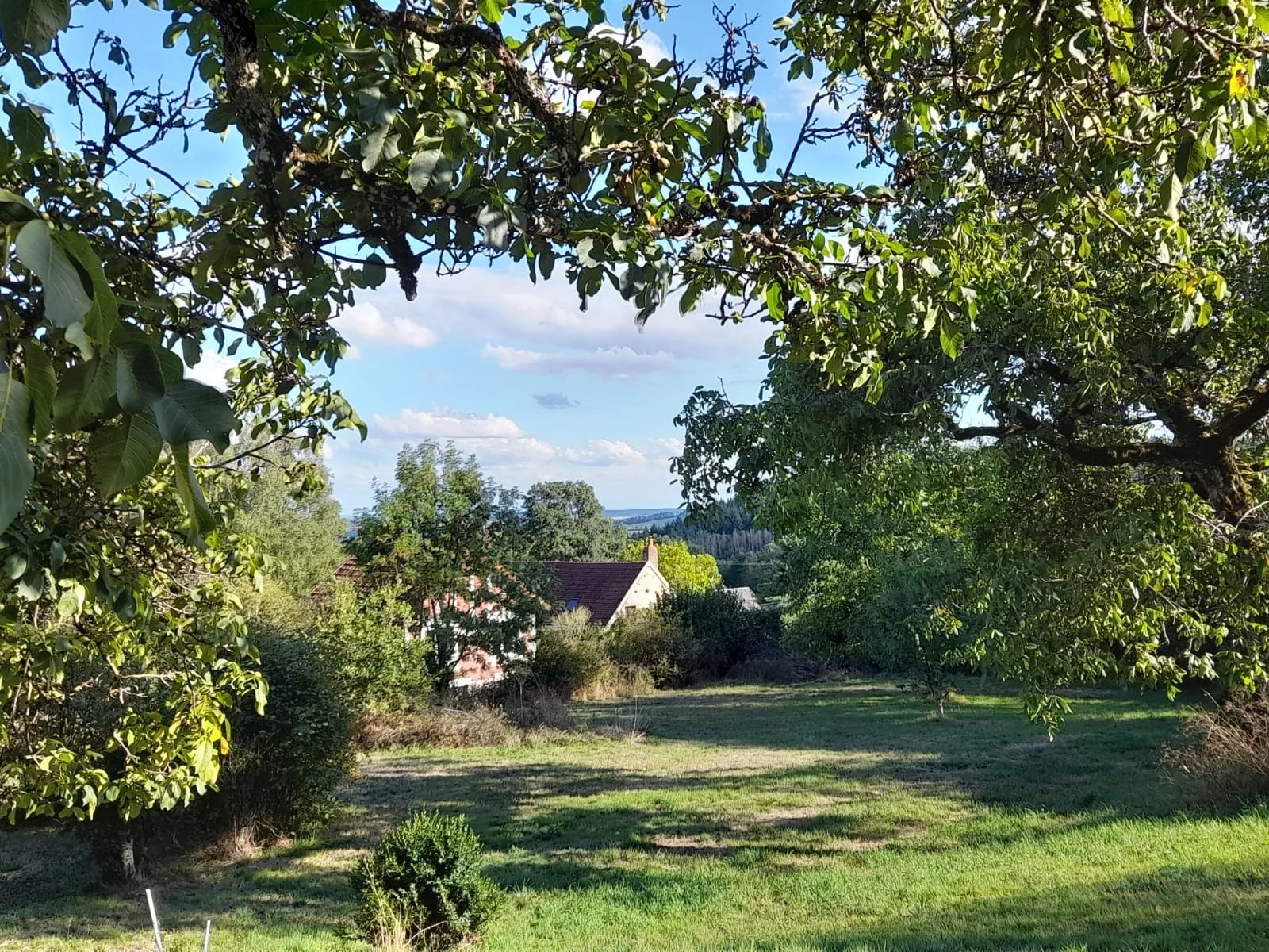 Beau jardin plat et vue dégagée sur les collines du Morvan.