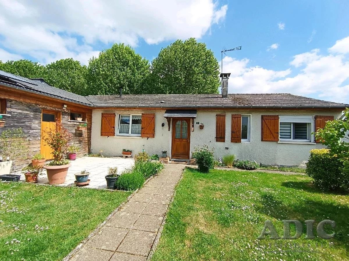 Maison traditionnelle de plain pied comprenant entrée, séjour de 34 m² avec un poële à granules récent, cuisine équipée, 3 chambres, bureau, salle d'eau, cellier.