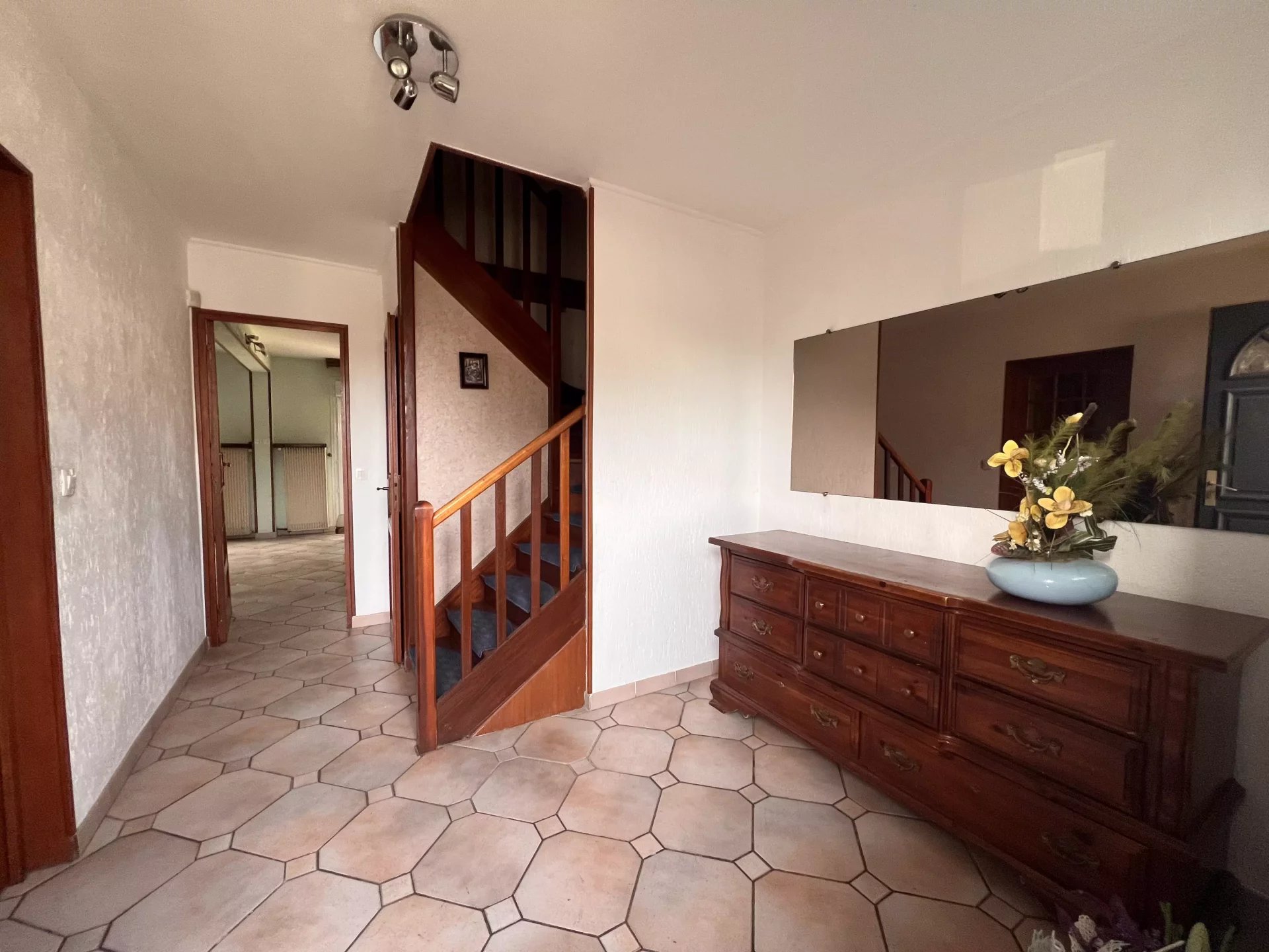 Au rez-de-chaussée, vous découvrirez une vaste entrée avec water-closets, une cuisine spacieuse, ainsi qu’un salon chaleureux agrémenté d’une cheminée. Les poutres apparentes et le charme de l’agencement créent une atmosphère authentique et conviviale.