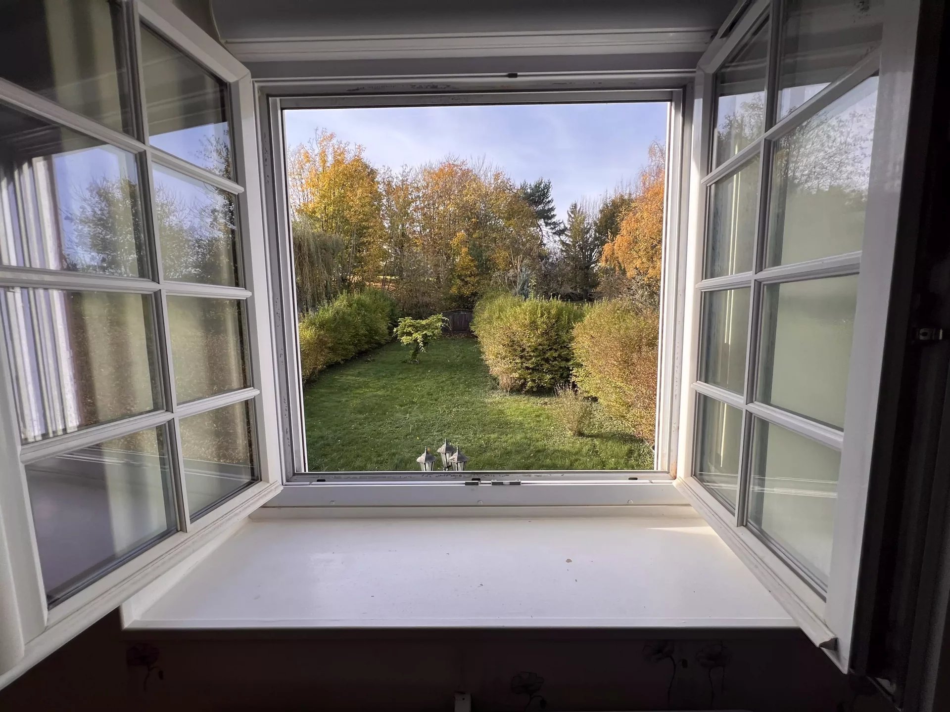 Les grandes fenêtres en PVC double vitrage et les volets roulants électriques apportent une belle luminosité et un confort appréciable.