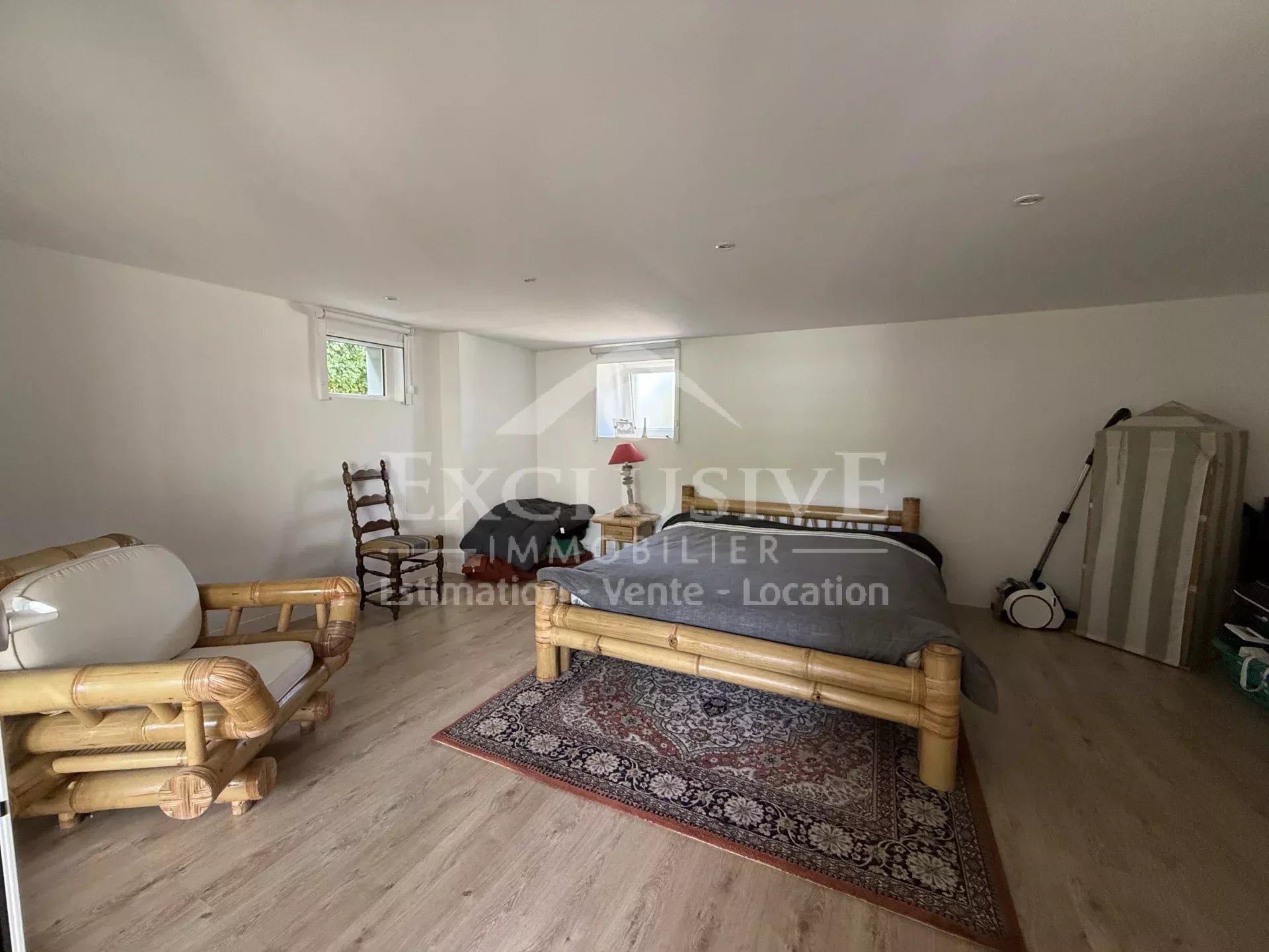 1 522 000 €Proche plage et commerces. Maison familiale sur sous-sol surélevé aménagé comprenant buanderie, local technique et 2 grandes pièces actuellement exploitées un deuxième espace jour et vaste chambre. Au rez-de-chaussée surélevé : salon-salle à manger lumineux avec accès à une terrasse en bois dominante sur le jardin, une chambre avec salle de douche, placard et toilettes séparées. À l’étage : trois chambres, une salle de douche récente, placards et toilettes séparées. Calme absolu, environnement arboré et préservé, proche des commodités. Abri de jardin en dépendance, plusieurs stationnements intérieurs, portail automatique coulissant, volets à commande centralisée. Le charme de l’ancien allié au confort d’une maison récente.