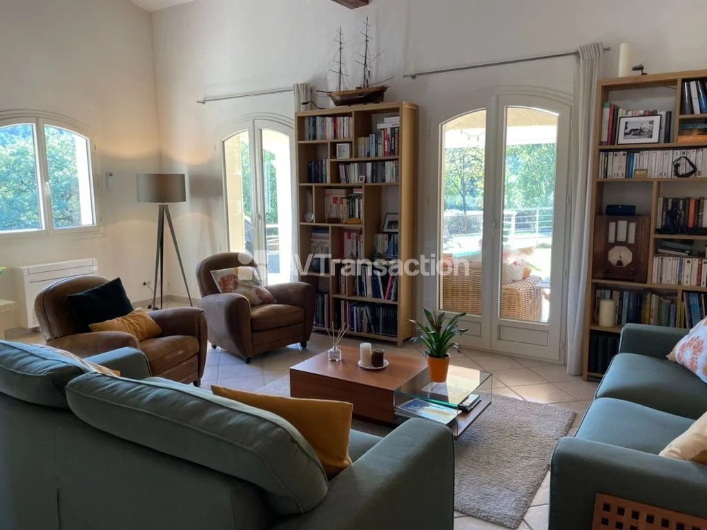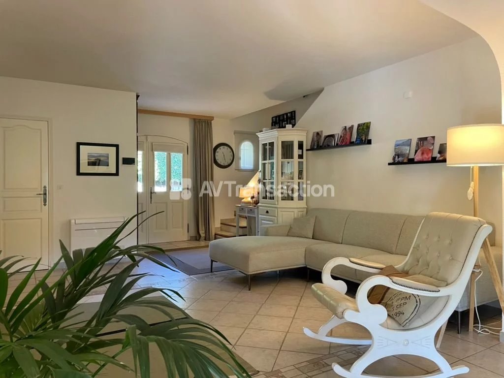 La villa de 220 m² vous offre un séjour ouvert et ensoleillé, donnant sur la terrasse (couverte). Hauts plafonds et cheminée à insert