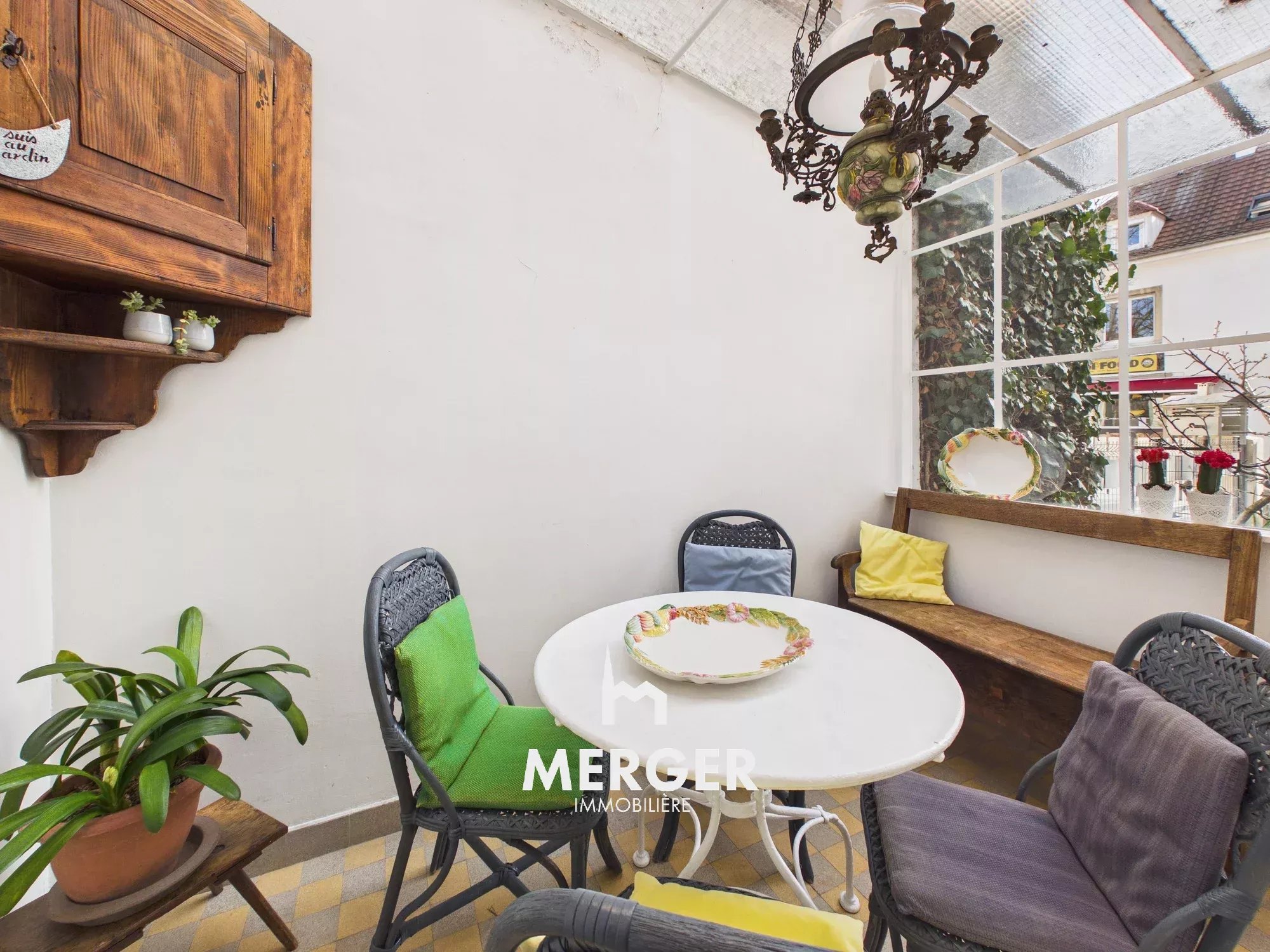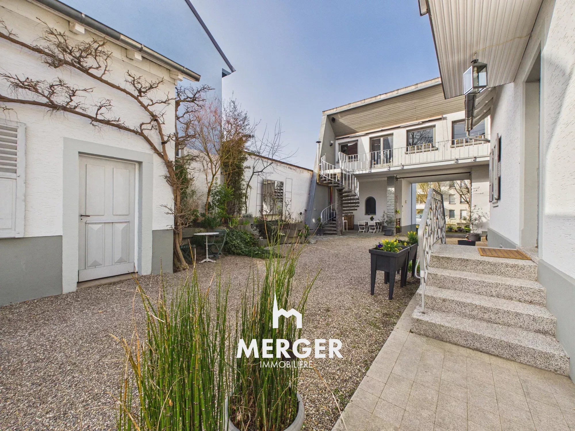 Cour pavée et jardin sur l'arrière.