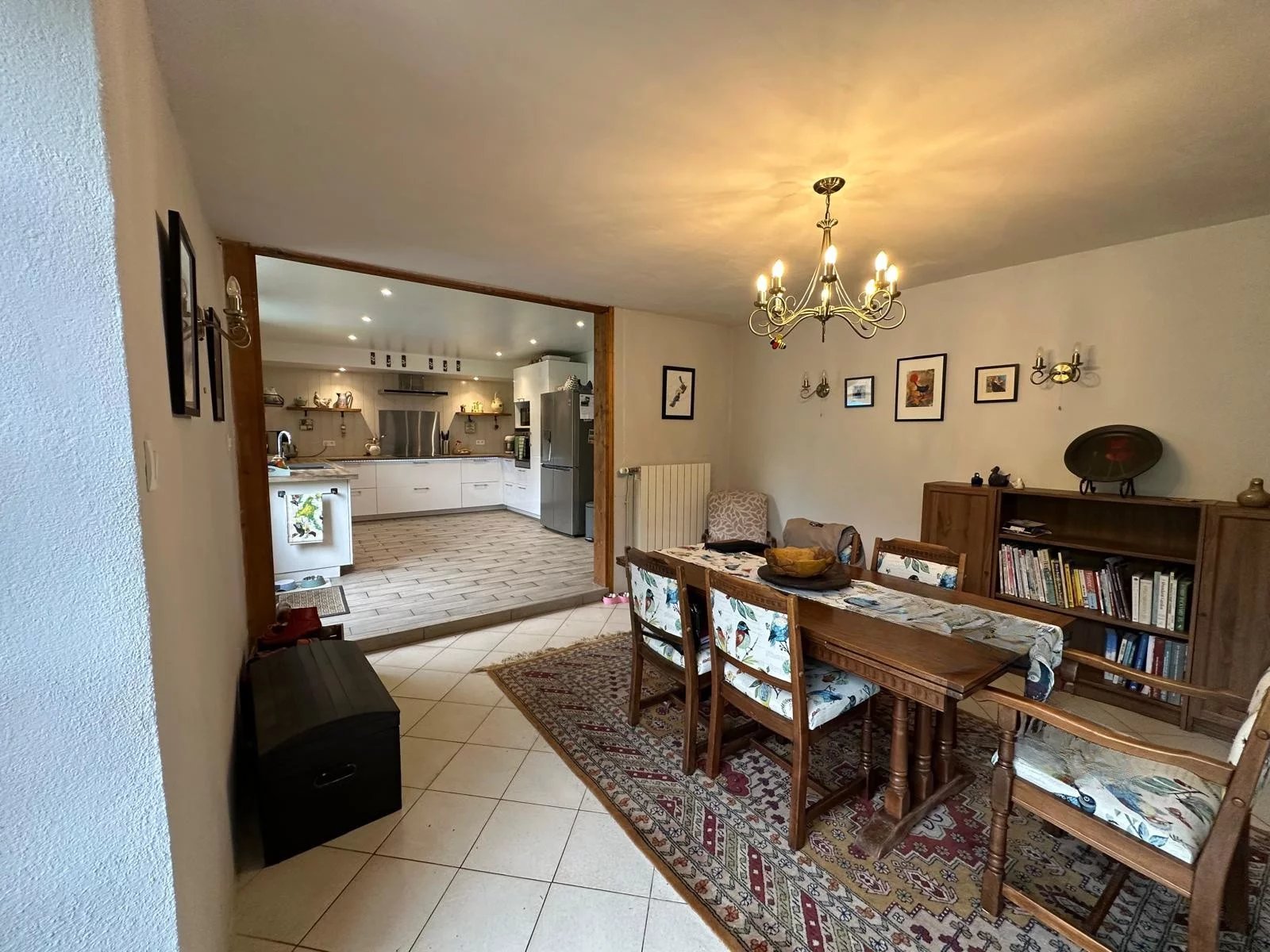 La cuisine (18,42 m²), récemment rénovée, est ouverte sur la salle à manger (18,77 m²), créant un bel espace de vie lumineux et fonctionnel.