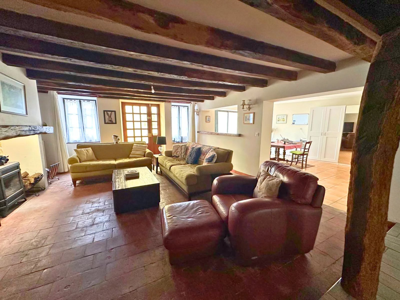 Dès l’entrée, vous serez accueillis dans un spacieux salon de 43,53 m², chaleureux et convivial, avec son poêle à bois.