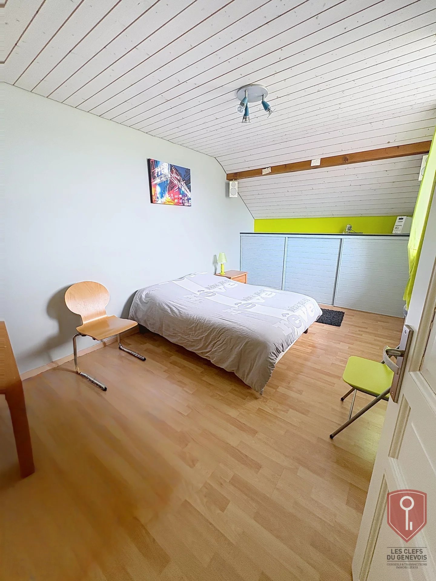 À l’étage, l’espace nuit propose trois chambres, un dressing, une salle de bains, une salle de douche et un WC indépendant, offrant une organisation fonctionnelle et confortable pour la vie de famille.