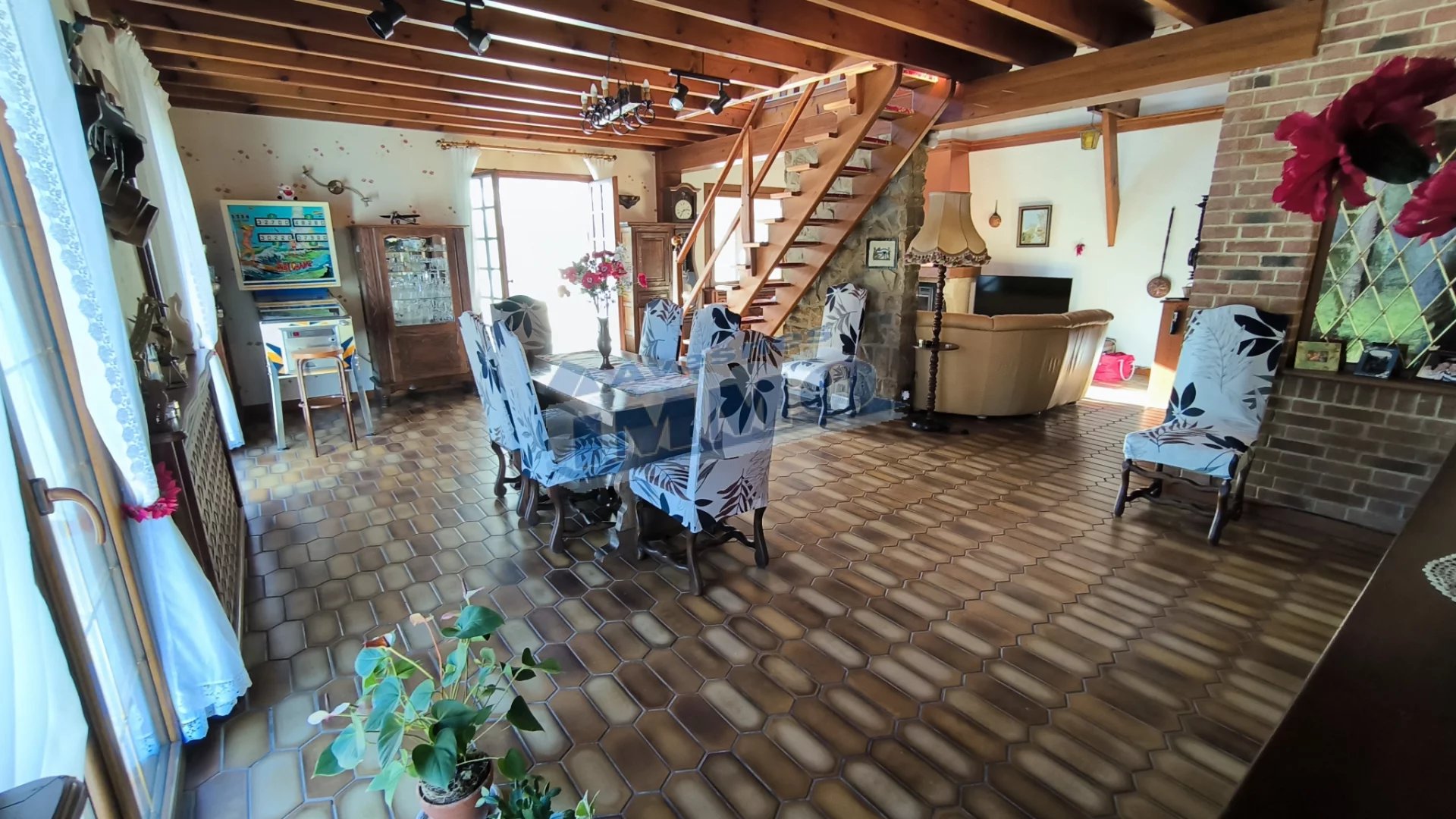 Secteur de Bienvillers au Bois. Beaux volumes pour ce pavillon individuel de 230 m2 dans un bel environnement de 2666 m2 offrant vaste entrée, spacieux salon/séjour avec cfbi et ouvert sur une cuisine équipée, véranda, 2 chambres, salle de cinéma, lingerie, salle de bains, wc ; à l'étage : grande mezzanine, 2 chambres, bureau, dressing. Terrasse. Garage (41m2). Hangar (46 m2). Chenil. Abri à bois. Beau jardin arboré avec coin potager. Bel espace de vie à découvrir !