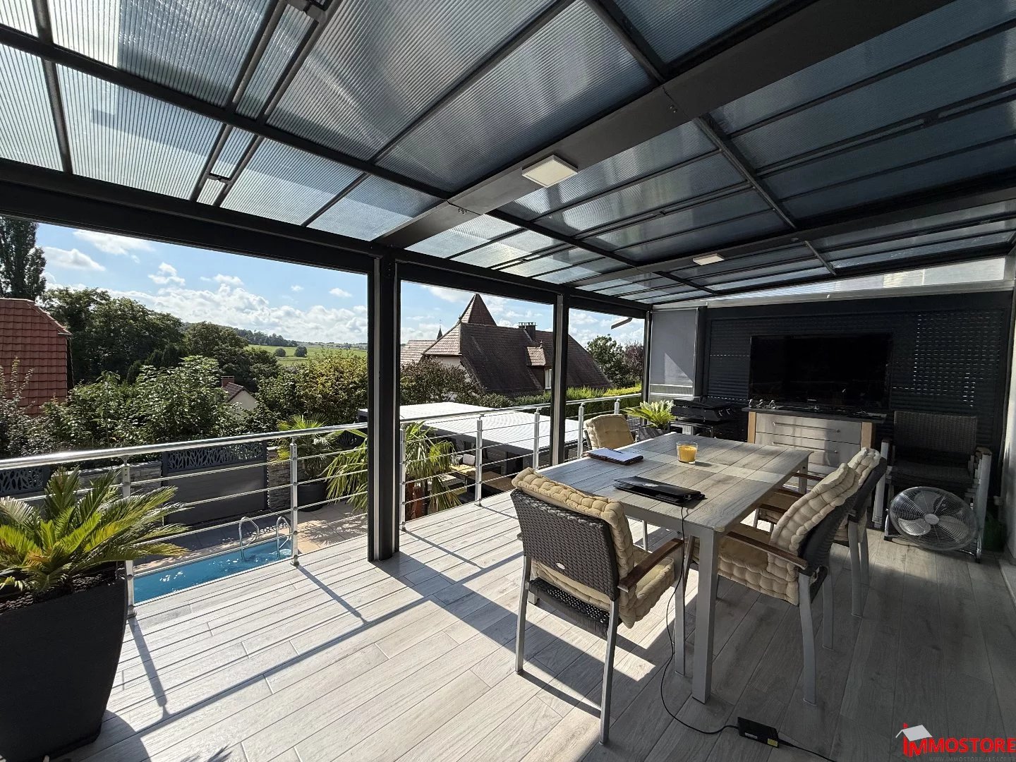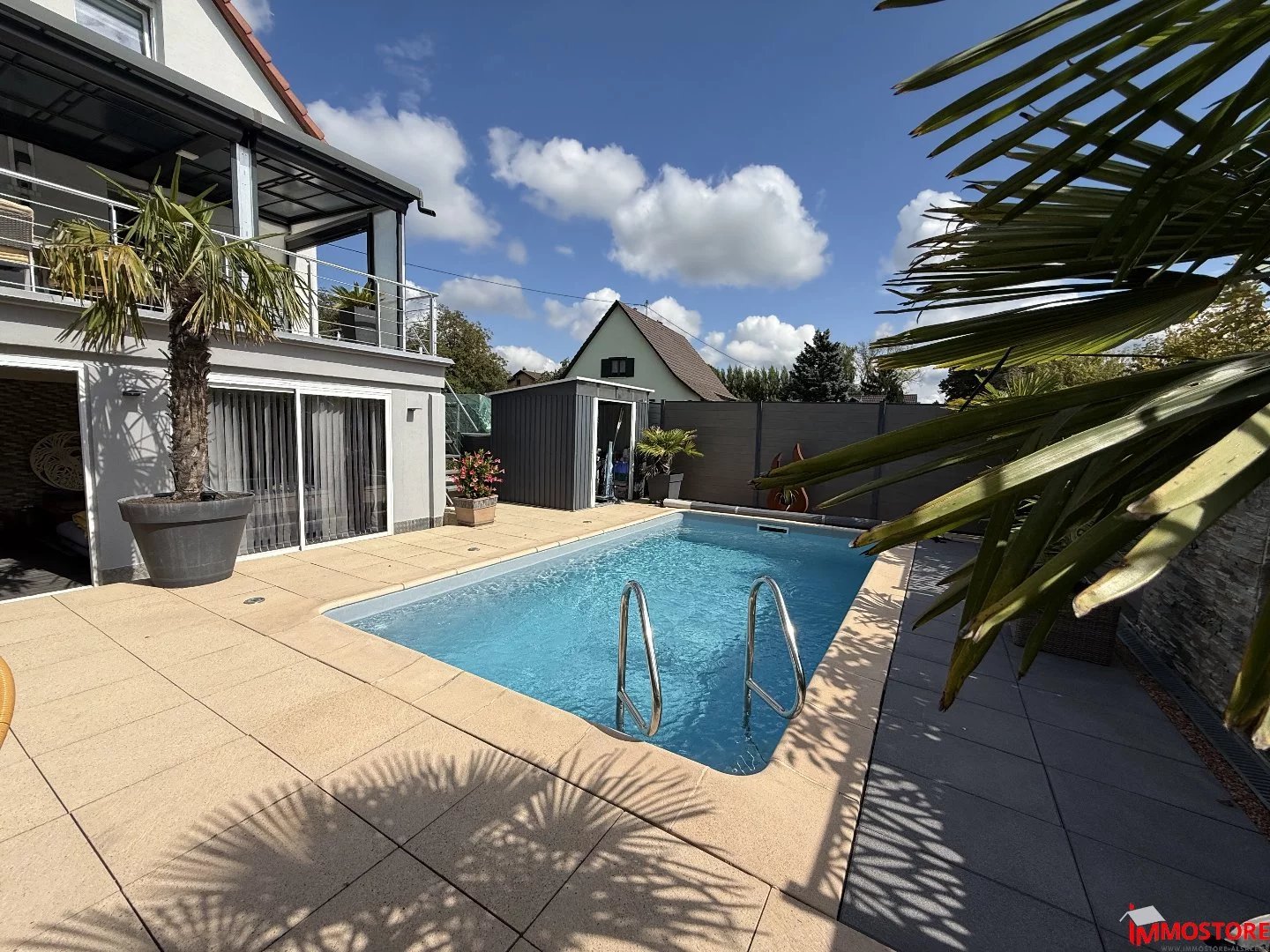 Vous cherchez un endroit paisible pour échapper au tumulte de la vie quotidienne ? Ne cherchez plus ! Découvrez cette charmante maison de 91 m², implantée sur un terrain verdoyant de 3,46 ares, offrant une vue dégagée sur les hauteurs de Franken. La maison dispose au rez-de-chaussée d'une entrée spacieuse menant directement à une grande pièce de vie lumineuse, offrant un accès à une belle terrasse sous pergola de 25 m². Vous trouverez également une cuisine semi-ouverte sur le séjour, entièrement équipée et aménagée. À l'étage, un dégagement dessert trois belles chambres à coucher, accompagnées d'une salle de bains fonctionnelle, dotée à la fois d'une douche et d'une baignoire. Au sous-sol, vous découvrirez une grande pièce multifonctionnelle, une salle d'eau, une buanderie/chaufferie, ainsi qu'un spacieux garage en enfilade. Cette agréable maison est complétée par un terrain de 3,46 ares, agrémenté de deux belles terrasses couvertes sous pergola, d'environ 30 m² et 25 m². Au pied de la seconde terrasse, une piscine creusée vous attend, sans oublier deux places de parking situées dans une cour privée à l'avant de la maison. Honoraires : 3,94 % TTC à la charge de lacquéreur Prix hors honoraires dagence : 381 000 IMMOSTORE - MUTH Guillaume - Plus d'informations sur www.immostore-alsace.fr (réf. 680091851)