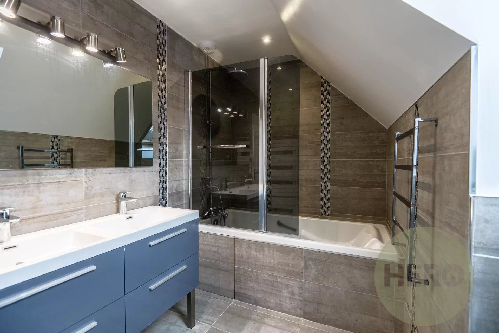 A l'étage (parquet bois), palier pouvant accueillir un espace bureau, grande suite parentale avec beau dressing sur mesure aménagé, salle de bains avec douche et WC, deux vastes chambres avec dressing, salle de bains avec WC.