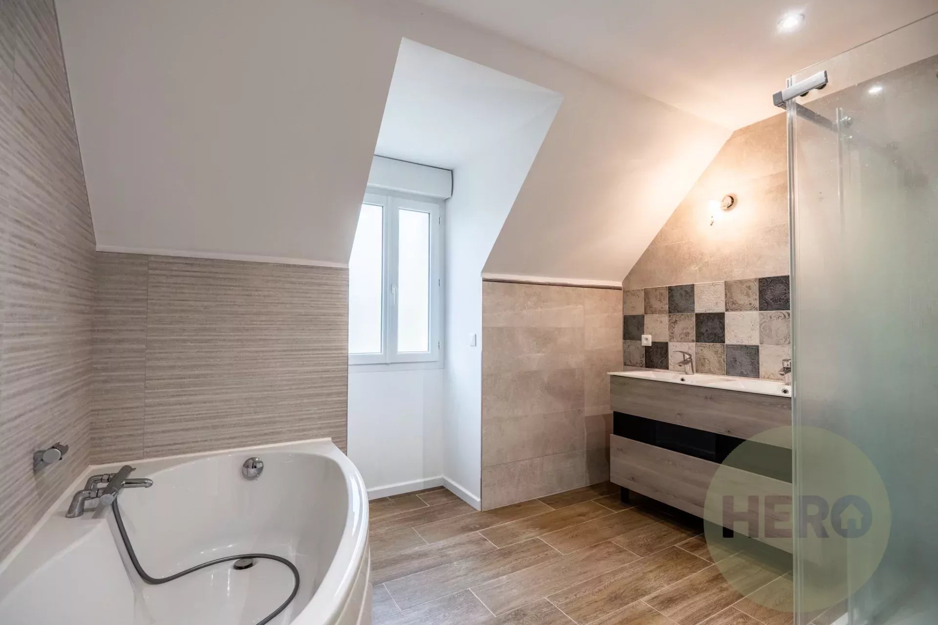 On aime: les volumes des espaces de vie, les quatre chambres dont une au rez-de-chaussée, la maison en impasse.