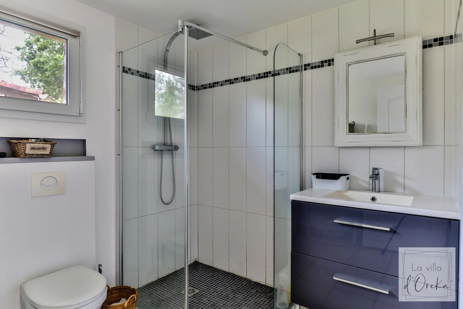 Sur la parcelle, une seconde dépendance récente et climatisée de 35m2 facilite l’accueil de la famille, hôtes et amis. Elle comprend une pièce de vie ouverte avec belle hauteur sous plafond et poutres apparentes, une cuisine équipée, une chambre, une salle d’eau avec wc et une terrasse bois privative.