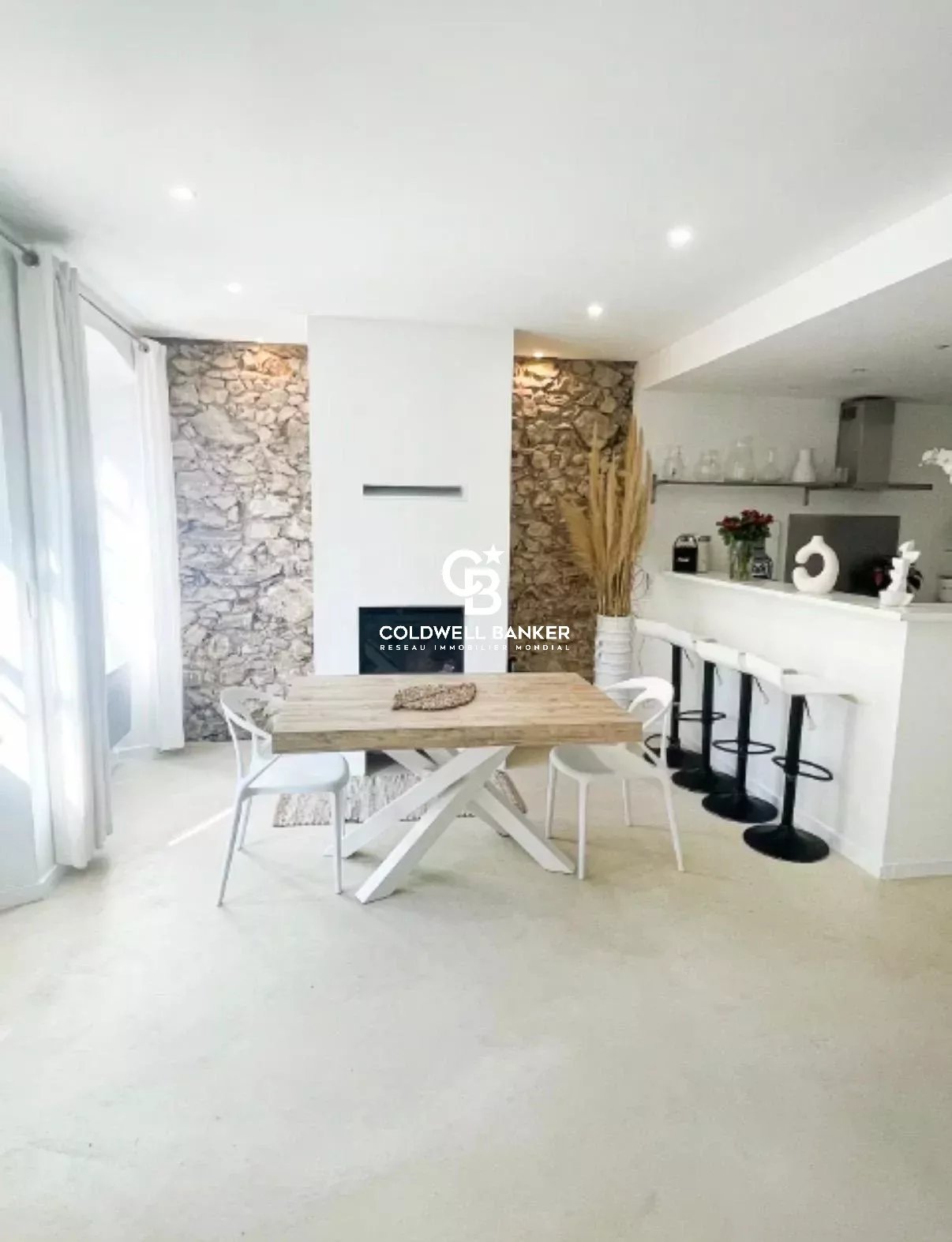 La cuisine, entièrement équipée, s’intègre parfaitement aux espaces de vie et crée un lieu convivial, à la fois raffiné et chaleureux. À l’extérieur, l’expérience se prolonge avec une piscine privée en bassin de pierre, idéale pour des instants de détente en toute intimité.