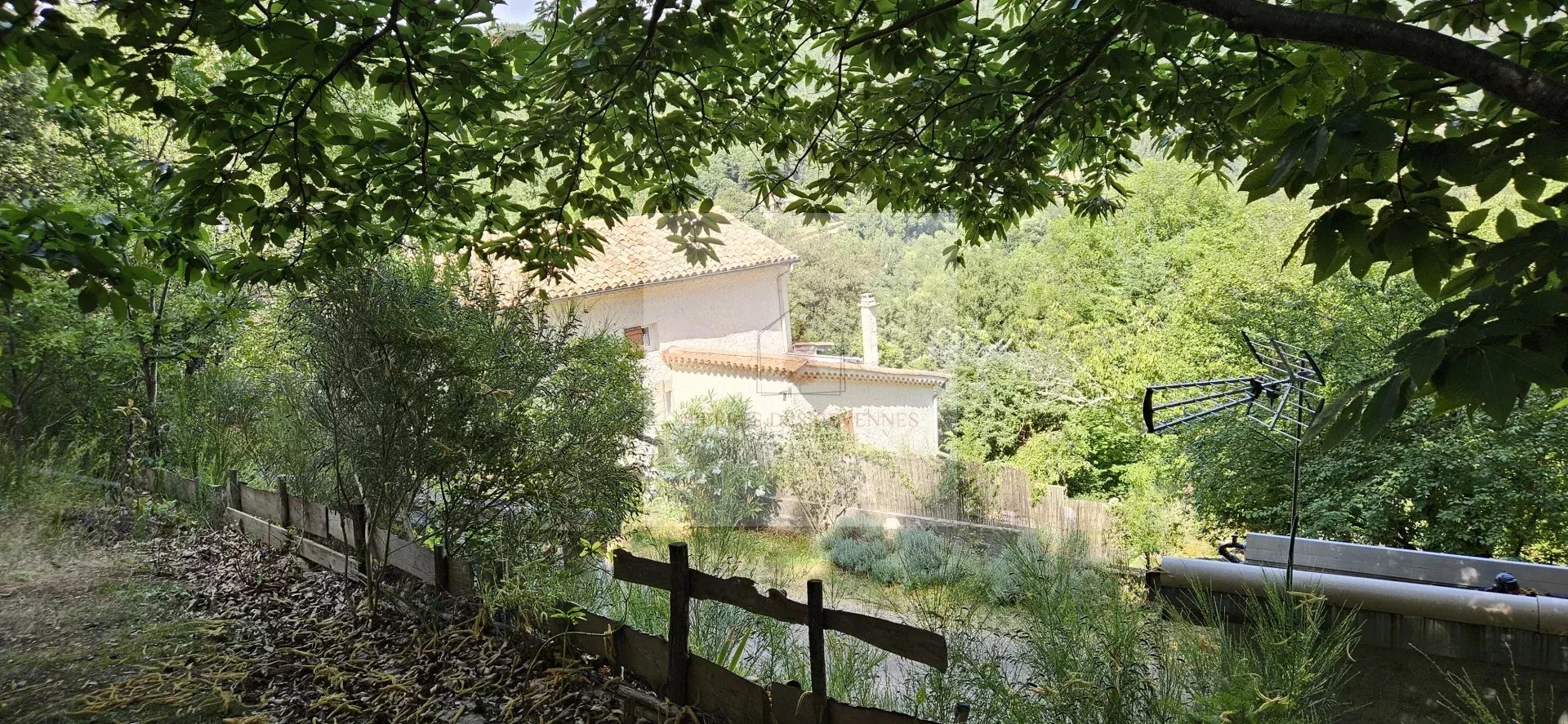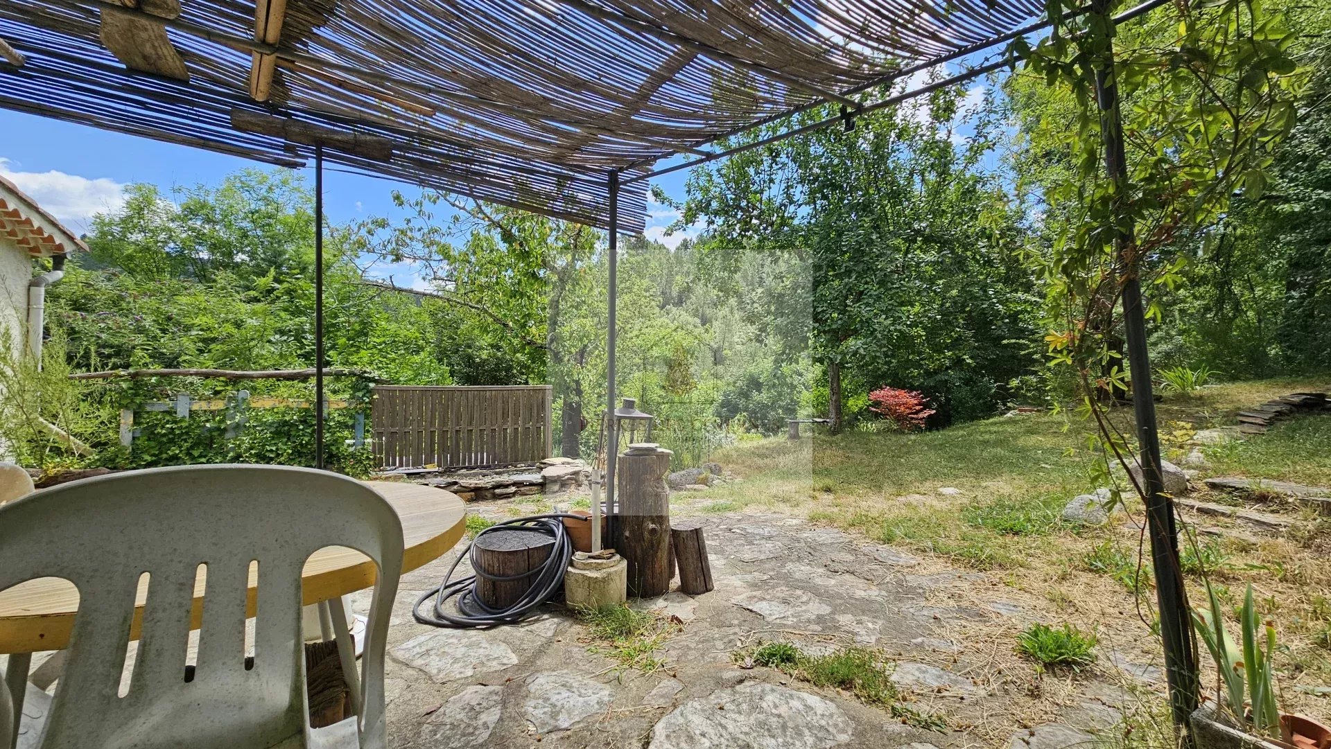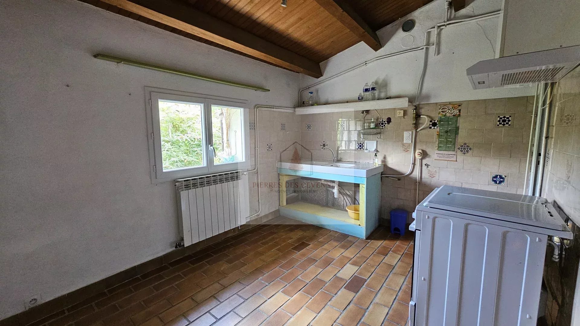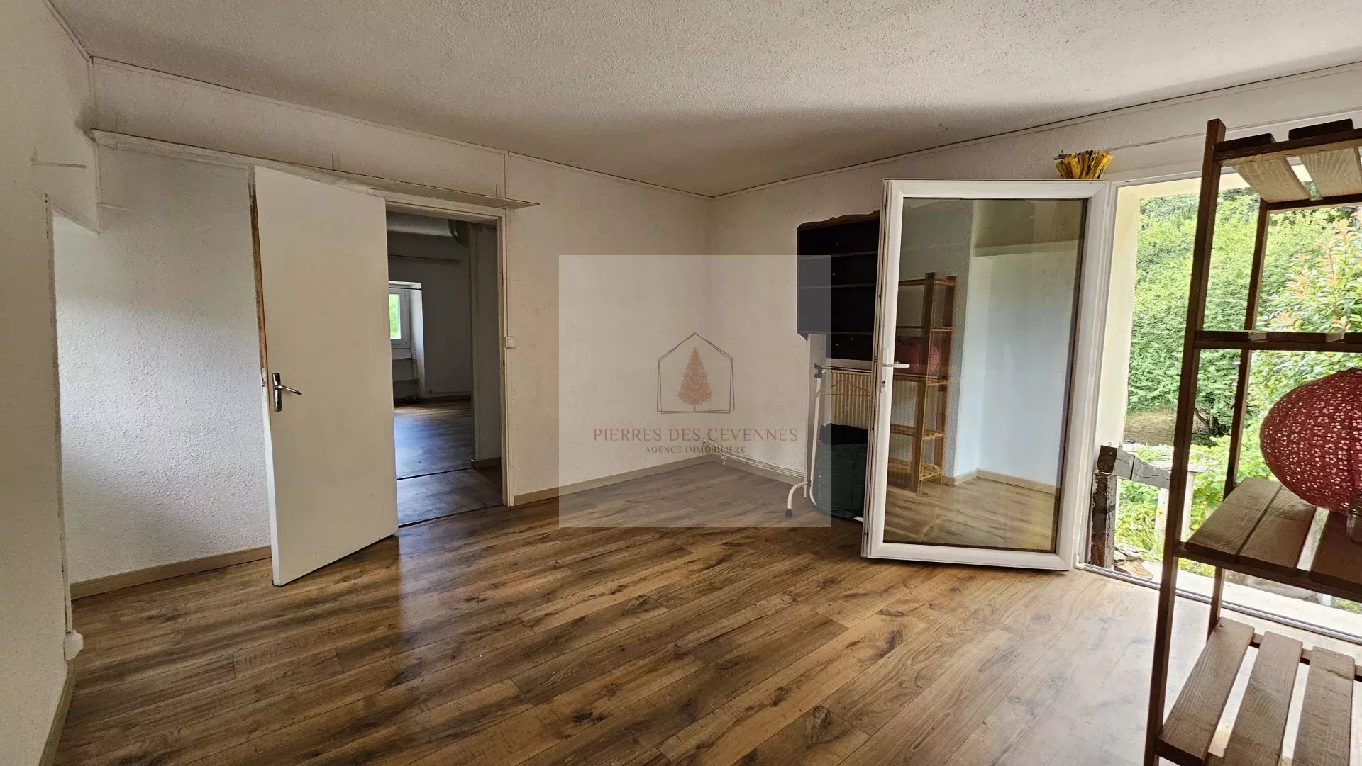 139 000 €Dans un hameau de 3 maisons, propriété en très bon état de 102 m², elle se compose d'une maison principale de 83 m², séjour de 37 m² avec cheminée et balcon plein Est, une cuisine en demi étage bas suivie de la salle d'eau, à l'étage une chambre pallier de 15 m² et une chambre de 16 m² ouvrant sur le jardin, Une grande cave et une servant de buanderie. Un studio non attenant de 19 m² en excellent état et un abris de jardin de 8.4 m² en bois. La propriété est sur un terrain de 1446 m² en restanques, arboré de vergers et de différentes essences cévenoles. Accès à la rivière et ses coins de baignades à pied