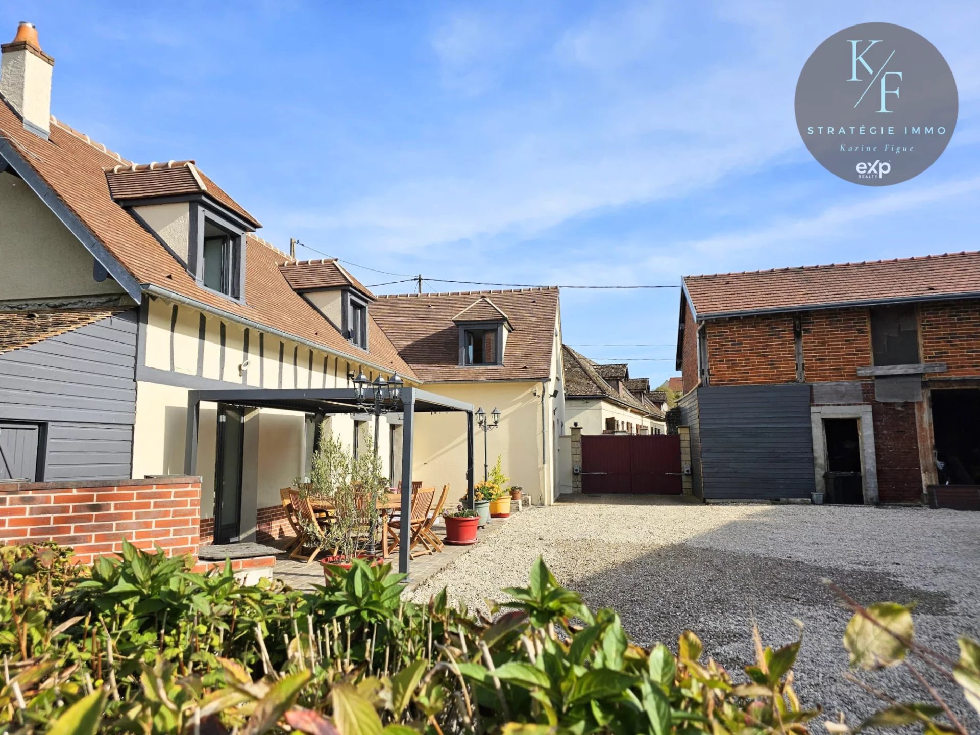 A l'extérieur, vous trouverez une cour gravillonnée permettant de stationner aisément plusieurs véhicules, une terrasse pour des moments de détente en famille ou entre amis et un jardin d'agrément pour tous.