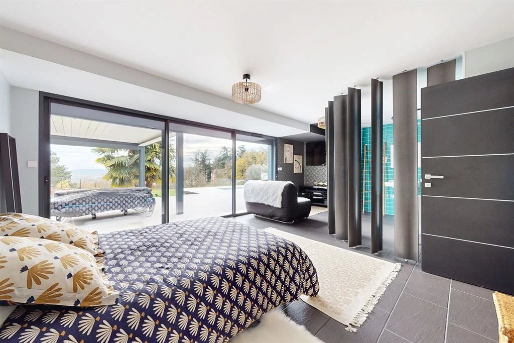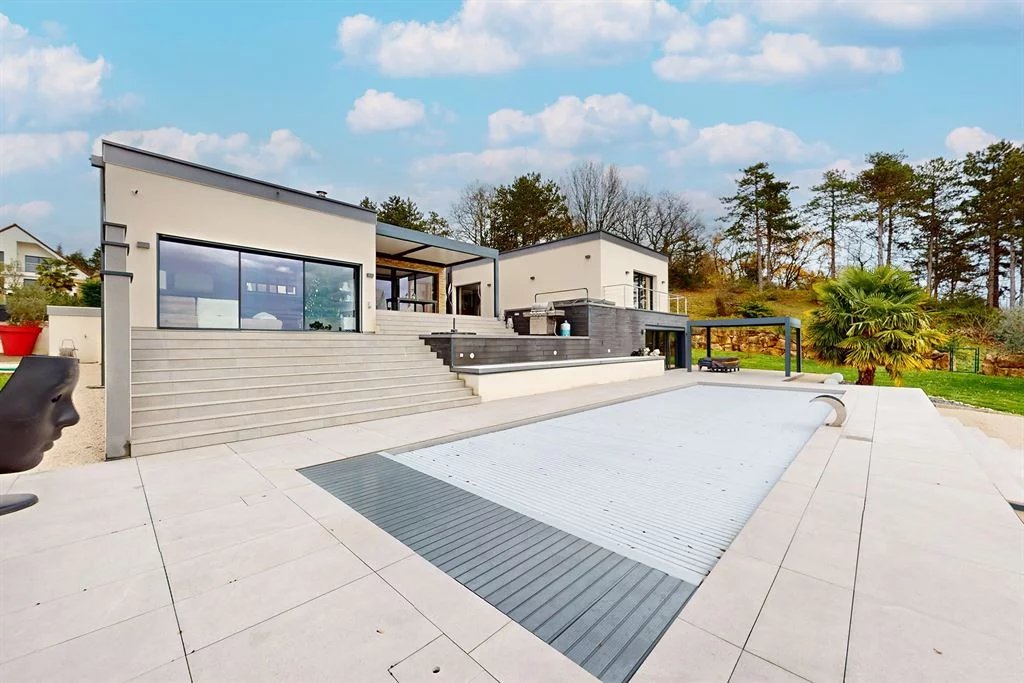 Édifiée sur un terrain paysager de 4 300 m², cette magnifique propriété darchitecte résolument contemporaine bénéficie de matériaux de très haute qualité, de vastes espaces extérieurs et dune vue panoramique exceptionnelle sur lhorizon, véritable invitation à la contemplation.