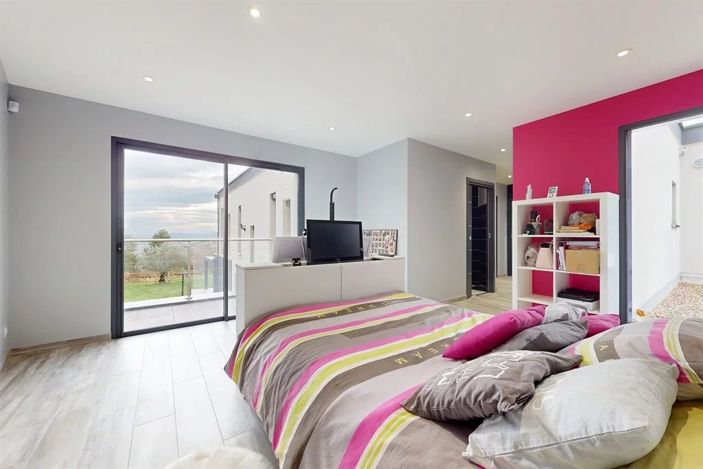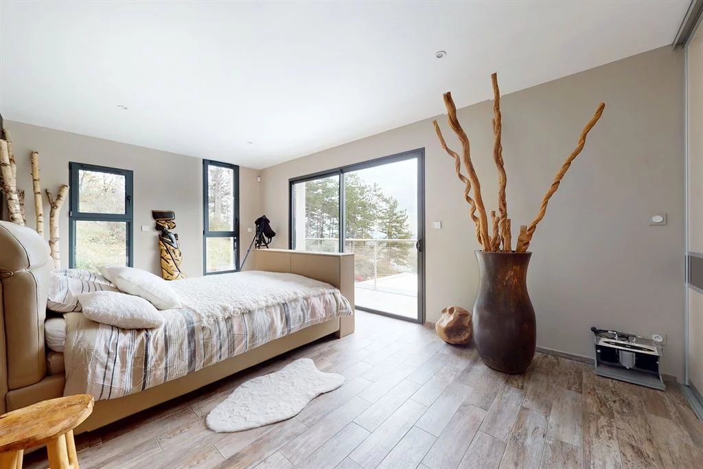 Sur 295 m², lintérieur accueille un salon chaleureux avec cheminée, un séjour confortable et une cuisine dexception, entièrement aménagée et équipée, quatre chambres avec pour chacune une salle deau et des toilettes privatives, offrant ainsi indépendance et confort.