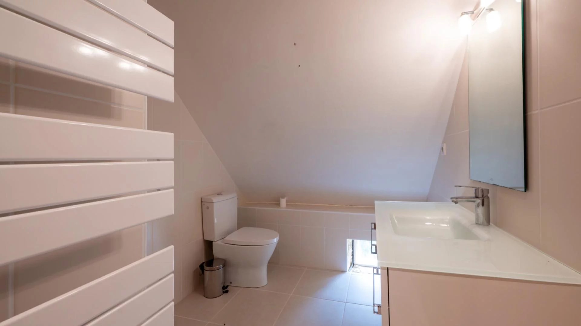 Maison d'amis/gite attenant comprenant séjour de 18 m², cuisine de 9,2 m² avec placards, chambre de 10 m² avec placards, salle d'eau wc de 2,7 m². Rangement en sous-pente à l'étage.