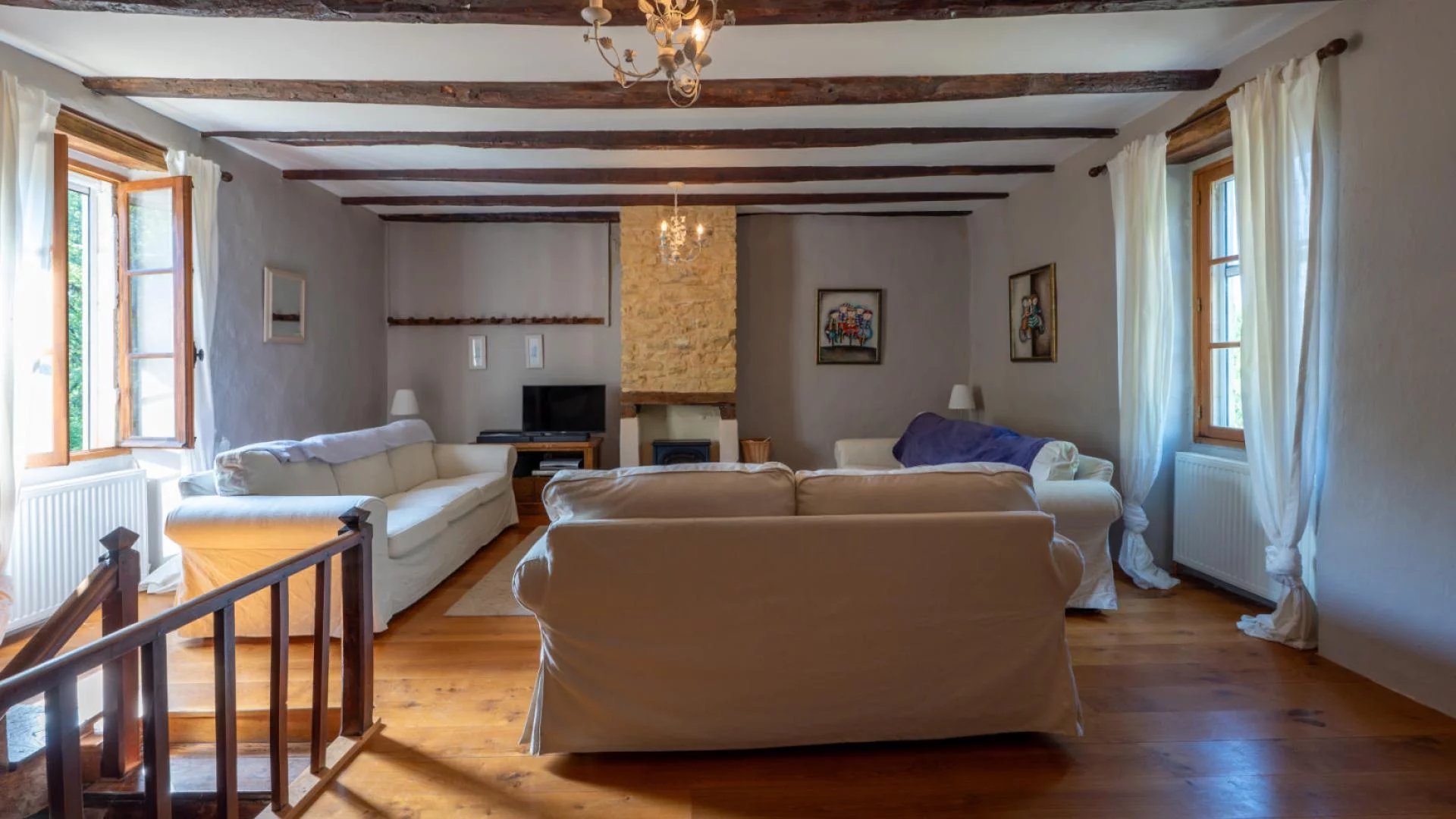 Chauffage au gaz et bois (poêle Godin). Double vitrage sur la majorité des fenêtres. Fosse septique.