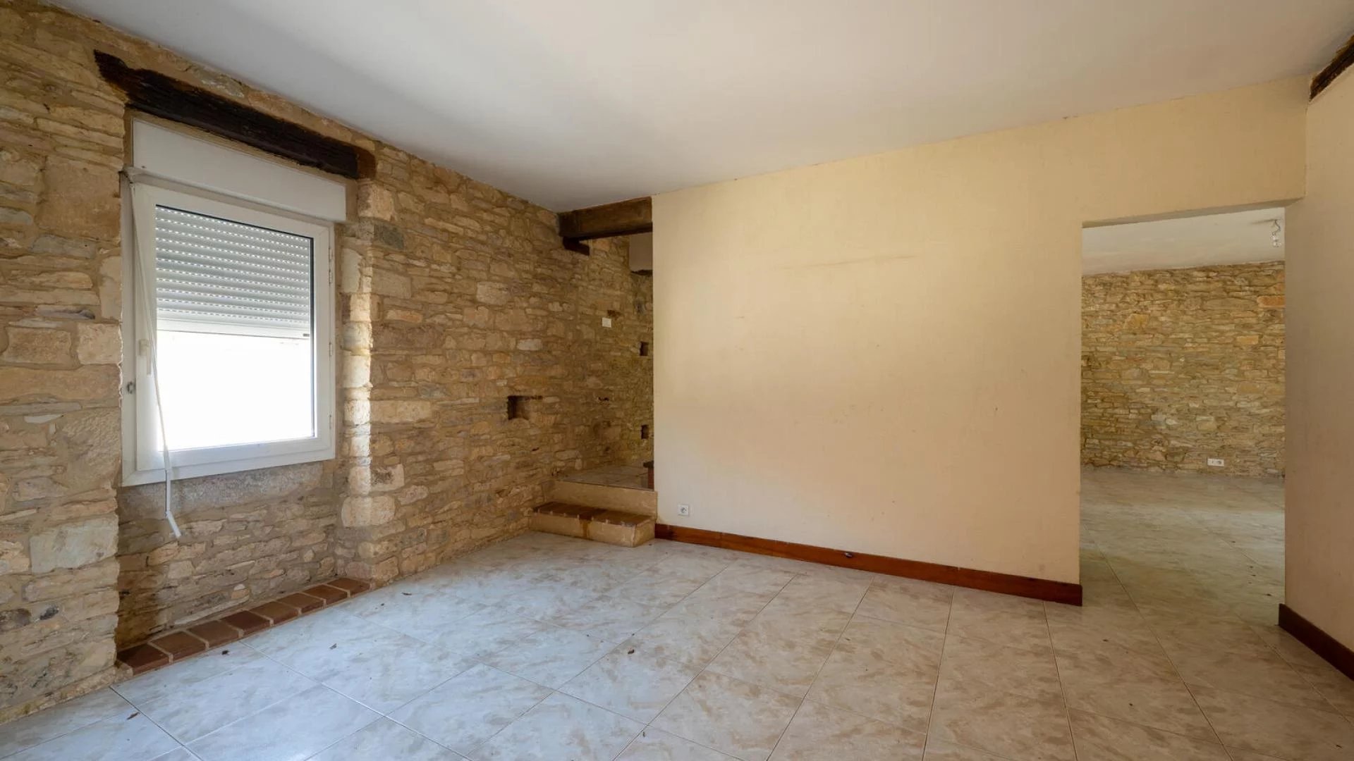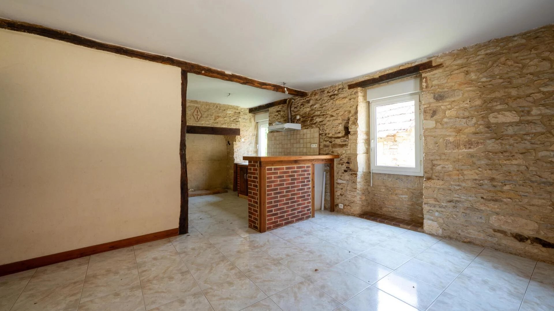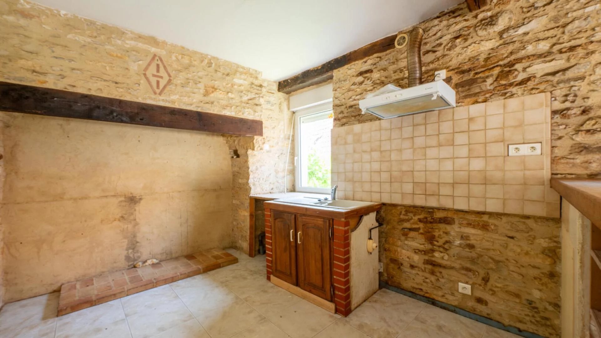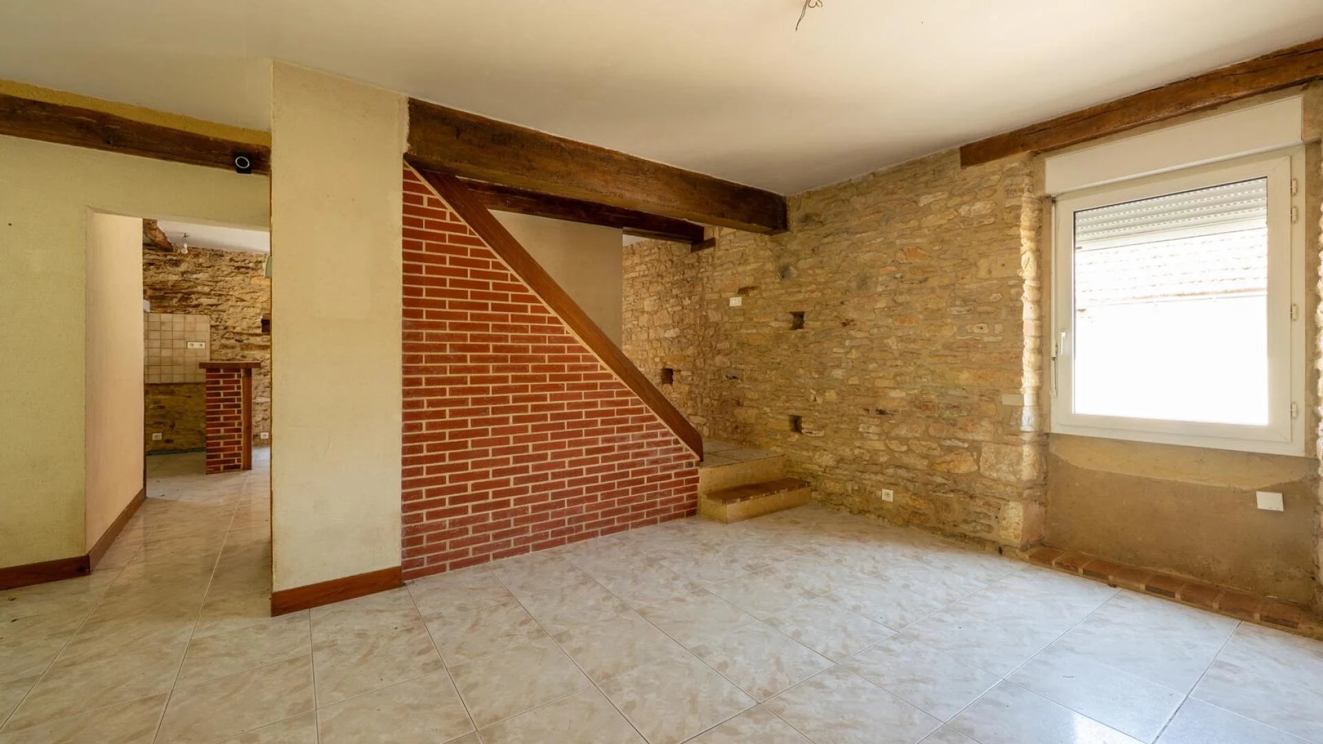 Au centre du village, avec un agréable jardin de 522m² de plain pied sur la grande pièce à vivre, cette charmante maison en pierre distribue :