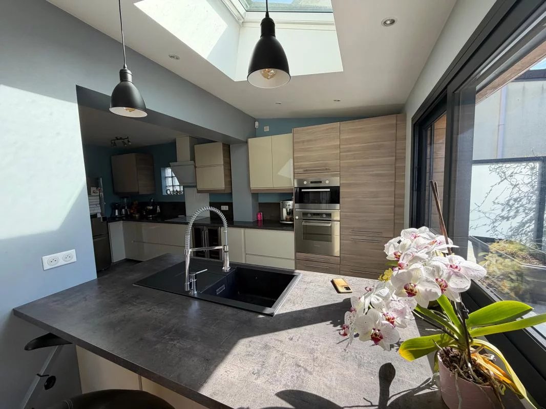 COUP DE COEUR POUR CETTE JOLIE MAISON LUMINEUSE A LA DECORATION SOIGNEE : CUISINE EQUIPEE OUVERTE SUR UN GRAND SEJOUR-SALON 48 m² AVEC CHEMINEE DONNANT SUR UNE TERRASSE DE 30 m² SANS VIS A VIS EXPOSEE ''SUD'' , SALLE D'EAU , WC , DRESSING . A L'ETAGE : DEGAGEMENT , 3 CHAMBRES (14m² , 13 m² et 11 m²). EN REZ DE JARDIN , GARAGE , UNE GRANDE PIECE DE 21 m² . JARDIN ARBORE , ECOLES ET CENTRE VILLE A DEUX MINUTES , RENSEIGNEMENTS A L'AGENCE.