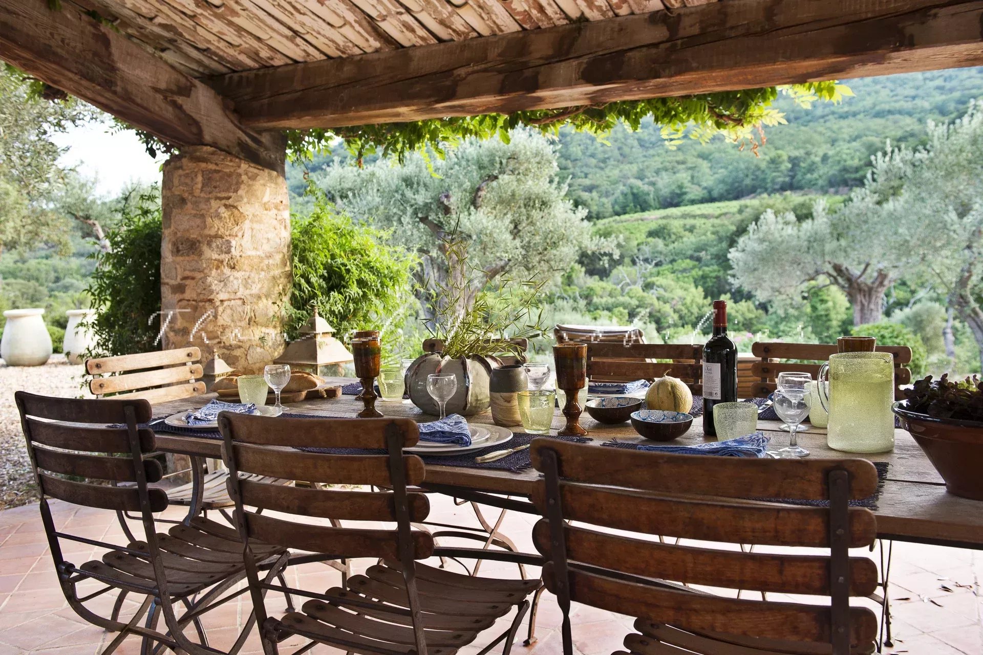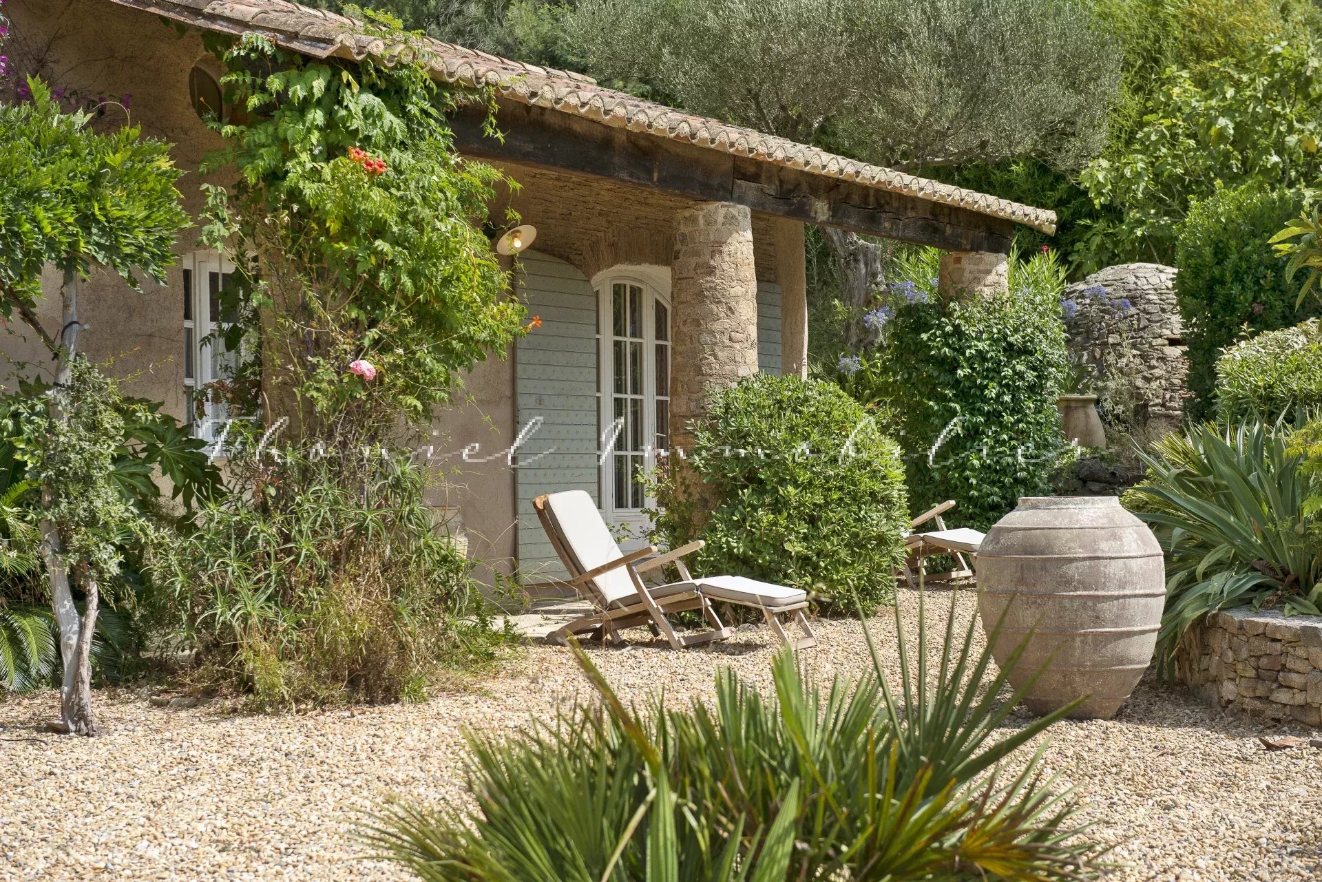 L'Agence Carine Thoniel vous propose à la vente cette propriété située à moins de 5 Km du village de Grimaud sur un terrain exceptionnel de près de 2 hectares complanté d'oliviers et d'essences méditerranéennes.