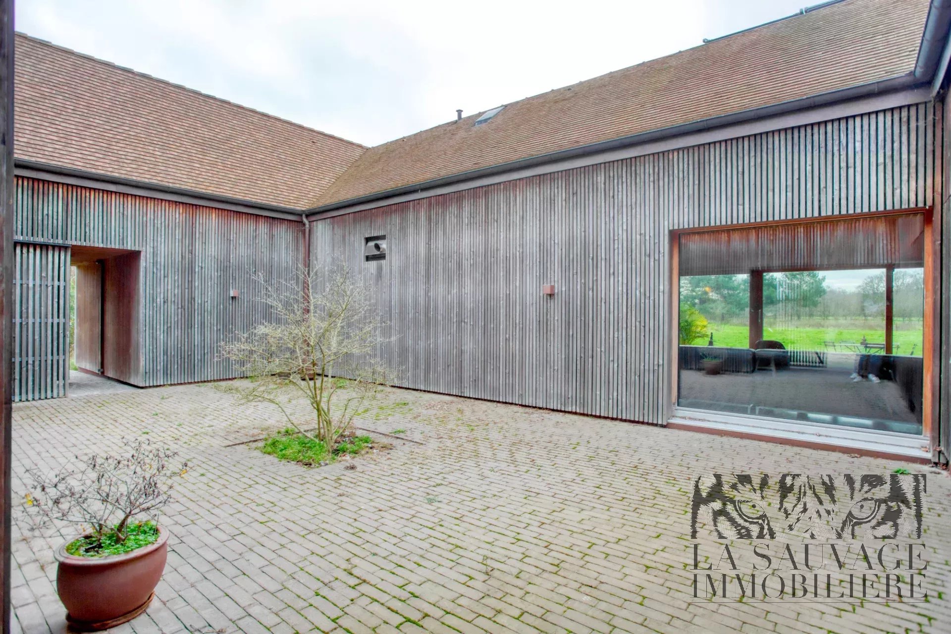 De l’autre côté du patio, un espace indépendant de 34 m², avec salle d’eau, a été aménagé en bureau — idéal pour une profession libérale, un atelier ou une chambre d’amis.