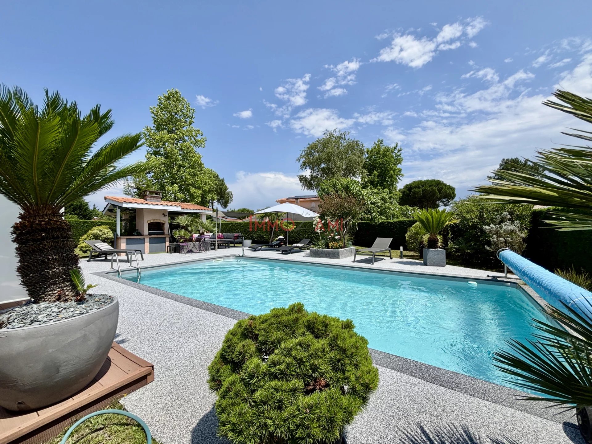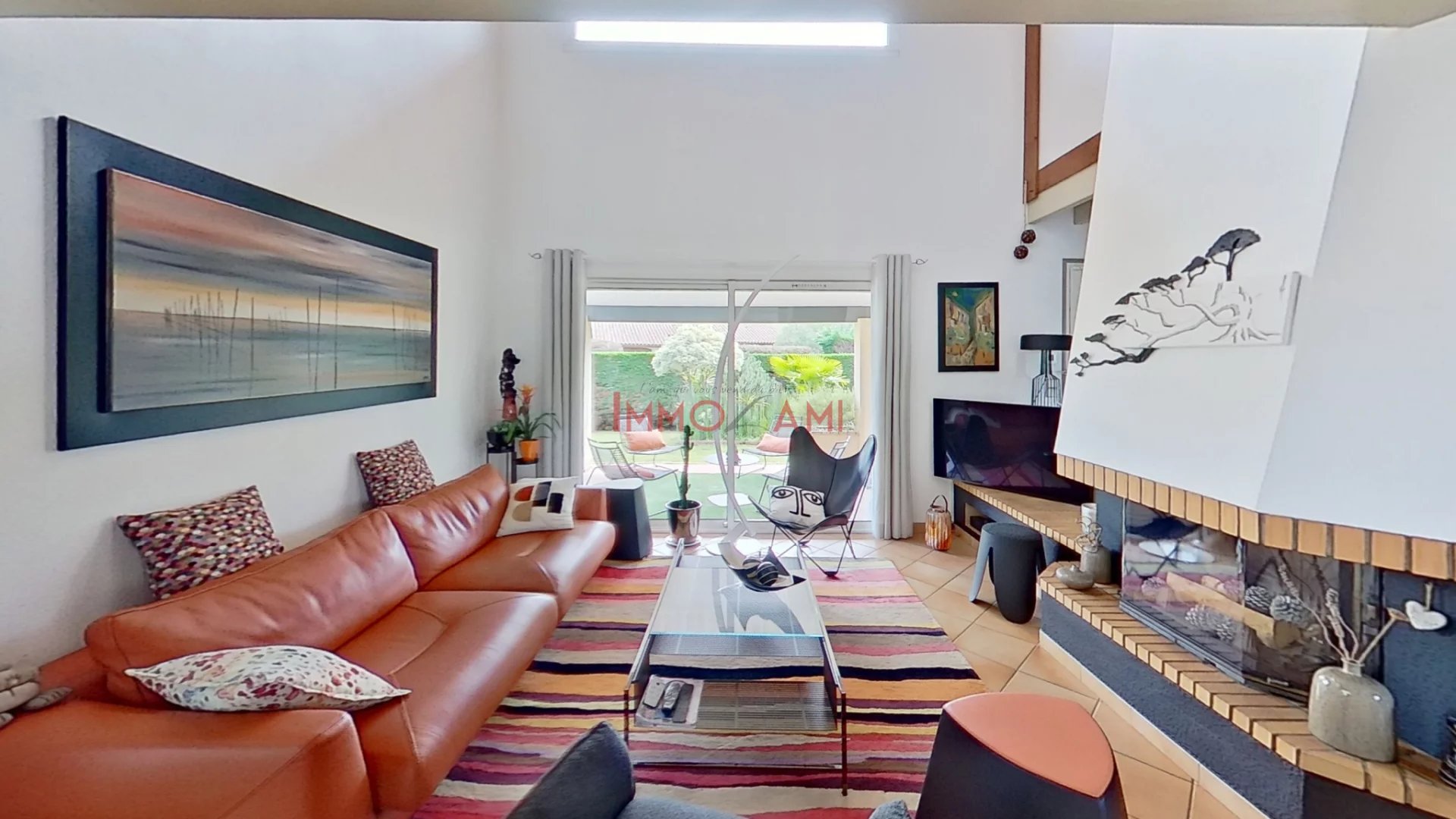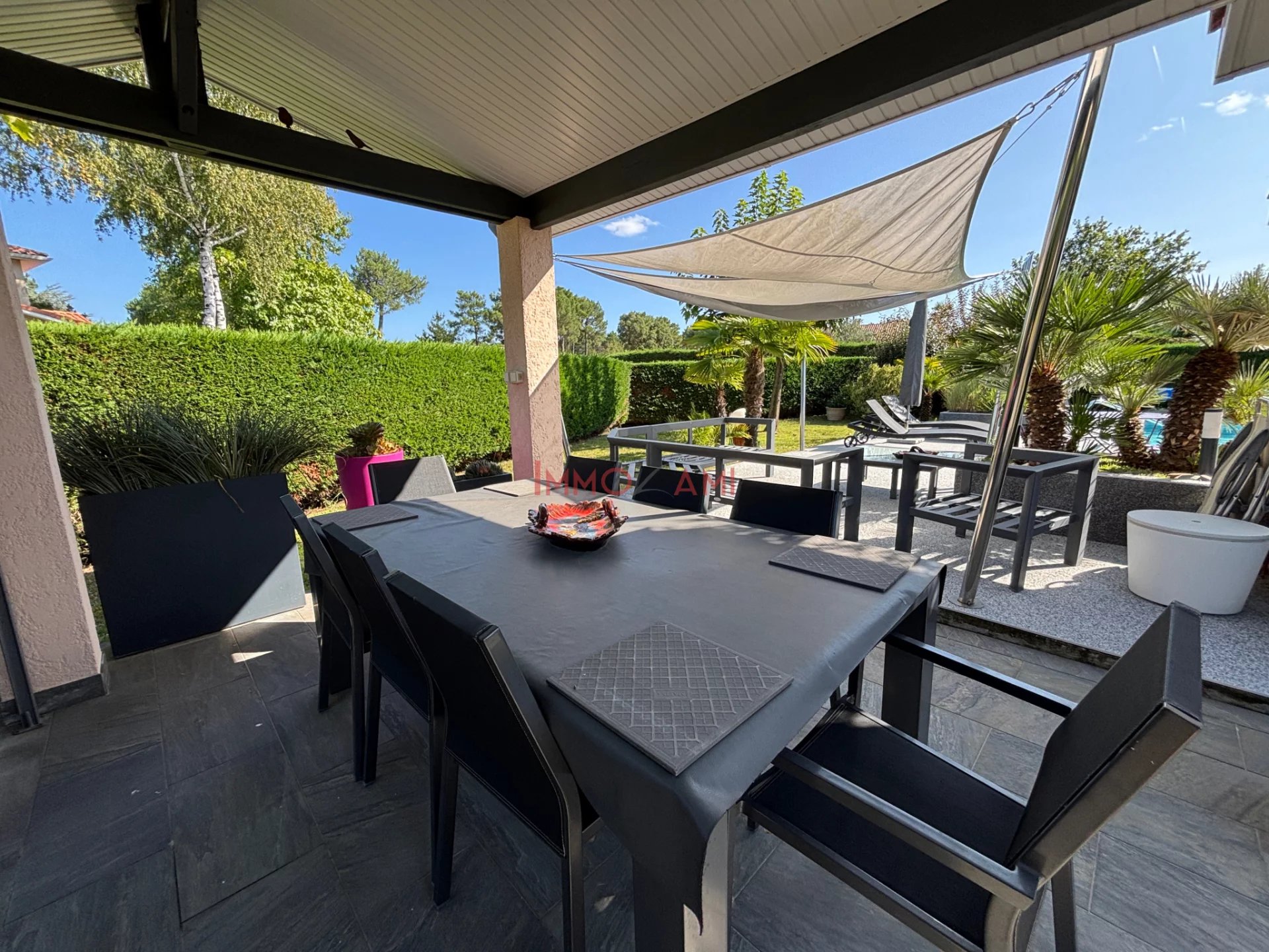 Une opportunité rare sur le Bassin d'Arcachon Située dans un quartier calme et recherché de Gujan-Mestras, à deux pas du Golf et à proximité immédiate des commerces, écoles et transports, cette maison contemporaine rénovée en 2020 offre un cadre de vie idéal pour une famille en quête d'espace, de confort et de sérénité. Avec ses 148 m2 habitables implantés sur un terrain clos et arboré de 921 m2 sans vis-à-vis, elle séduit par sa luminosité, ses volumes généreux et son extérieur pensé pour la détente et la convivialité. Les atouts de la maison : Un intérieur moderne et fonctionnel o Rez-de-jardin : vaste séjour lumineux de 37 m2 avec cheminée, cuisine équipée avec îlot central ouverte sur la terrasse, deux chambres, salle d'eau spacieuse, cellier et WC indépendant. o Étage : mezzanine aménageable en bureau, troisième chambre avec salle d'eau privative. Un extérieur pensé pour vos moments de détente o Piscine 9,50 m × 4,50 m avec plage intégrée. o Grandes terrasses en matériaux drainants de 133 m2 orientées sud-est et sud-ouest. o Pergola bioclimatique, espace barbecue, jardin paysagé avec arrosage automatique et éclairage intégré. o Annexe indépendante de 22 m2 : bureau, studio invité ou activité libérale. o Garage fermé, stationnements extérieurs et abri de jardin. Une localisation idéale à Gujan-Mestras : o Complexe sportif et forêt accessibles à pied. o Golf et centre commercial à seulement 2 km. o Gare, commerces, écoles et services à 10 minutes à pied. o Plages, port de plaisance, théâtre et cinéma à quelques minutes en voiture. En résumé : o Maison contemporaine rénovée 148 m2 habitables. o Terrain sans vis-à-vis de 921 m2 avec piscine et terrasses. o Annexe de 22 m2 pour recevoir ou travailler. o Quartier calme proche du Golf de Gujan-Mestras. o Nouveau prix attractif : 780 000 EUR frais d'agence inclus. Contactez-nous dès aujourd'hui Ne laissez pas passer cette opportunité sur le Bassin d'Arcachon. Appelez l'agence ImmoLami au 06 37 72 41 62 ou par mail à immolami@gmail.com pour organiser une visite.
