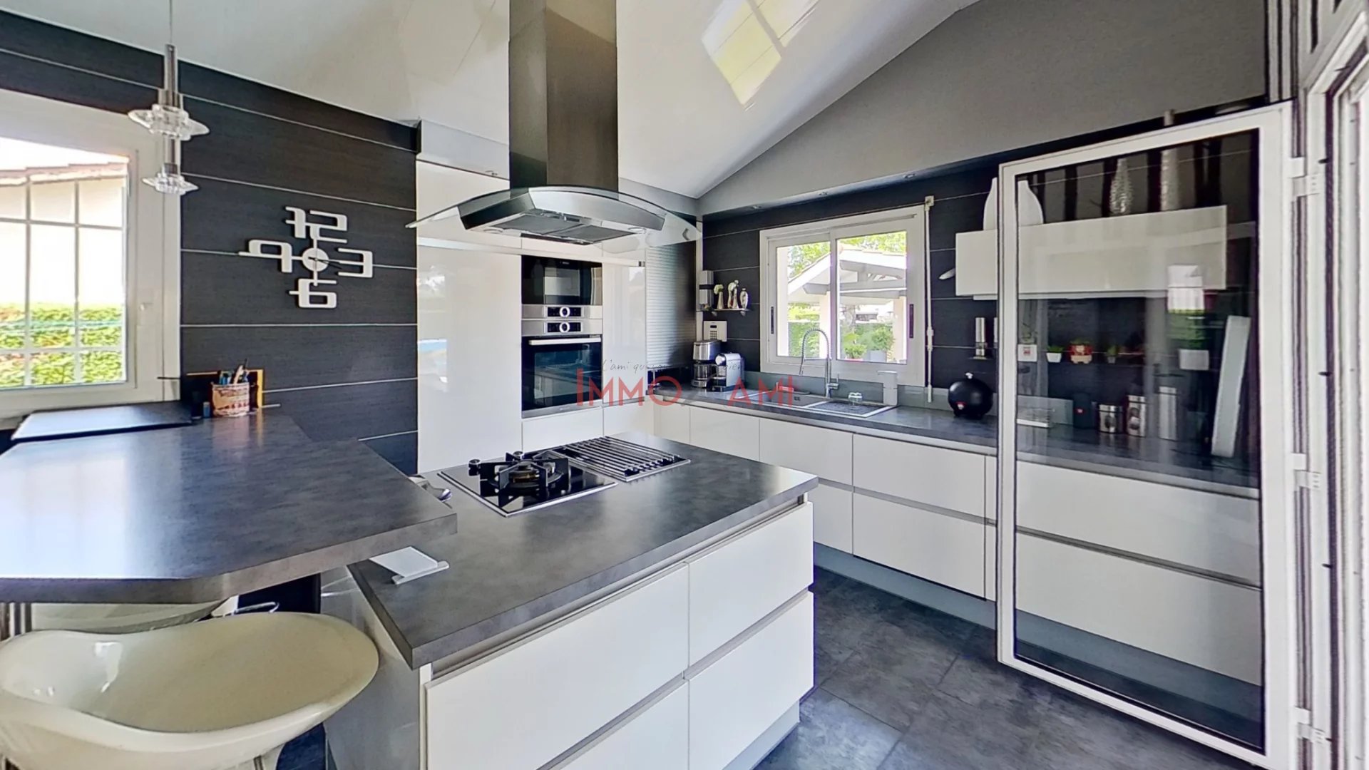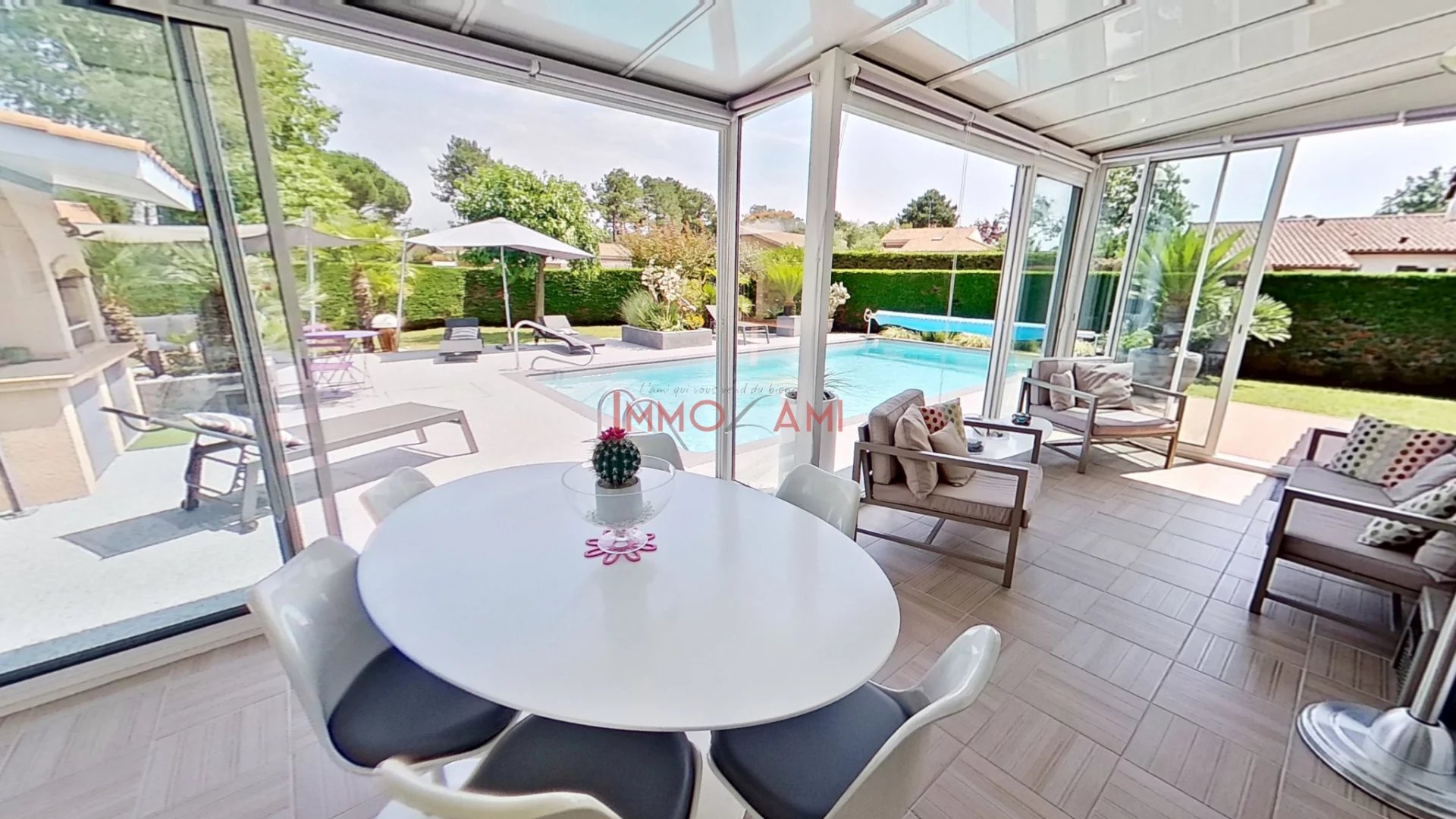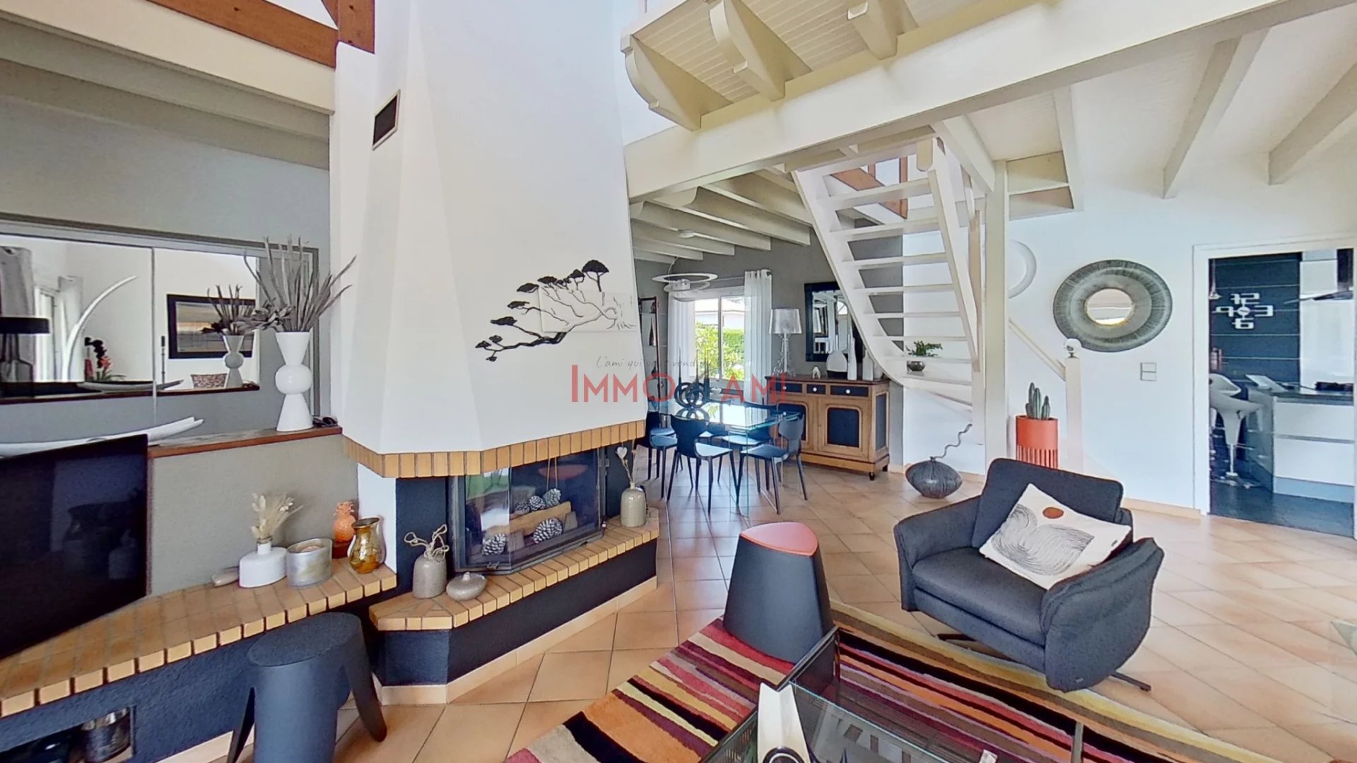 Une opportunité rare sur le Bassin d'Arcachon Située dans un quartier calme et recherché de Gujan-Mestras, à deux pas du Golf et à proximité immédiate des commerces, écoles et transports, cette maison contemporaine rénovée en 2020 offre un cadre de vie idéal pour une famille en quête d'espace, de confort et de sérénité. Avec ses 148 m2 habitables implantés sur un terrain clos et arboré de 921 m2 sans vis-à-vis, elle séduit par sa luminosité, ses volumes généreux et son extérieur pensé pour la détente et la convivialité. Les atouts de la maison : Un intérieur moderne et fonctionnel o Rez-de-jardin : vaste séjour lumineux de 37 m2 avec cheminée, cuisine équipée avec îlot central ouverte sur la terrasse, deux chambres, salle d'eau spacieuse, cellier et WC indépendant. o Étage : mezzanine aménageable en bureau, troisième chambre avec salle d'eau privative. Un extérieur pensé pour vos moments de détente o Piscine 9,50 m × 4,50 m avec plage intégrée. o Grandes terrasses en matériaux drainants de 133 m2 orientées sud-est et sud-ouest. o Pergola bioclimatique, espace barbecue, jardin paysagé avec arrosage automatique et éclairage intégré. o Annexe indépendante de 22 m2 : bureau, studio invité ou activité libérale. o Garage fermé, stationnements extérieurs et abri de jardin. Une localisation idéale à Gujan-Mestras : o Complexe sportif et forêt accessibles à pied. o Golf et centre commercial à seulement 2 km. o Gare, commerces, écoles et services à 10 minutes à pied. o Plages, port de plaisance, théâtre et cinéma à quelques minutes en voiture. En résumé : o Maison contemporaine rénovée 148 m2 habitables. o Terrain sans vis-à-vis de 921 m2 avec piscine et terrasses. o Annexe de 22 m2 pour recevoir ou travailler. o Quartier calme proche du Golf de Gujan-Mestras. o Nouveau prix attractif : 780 000 EUR frais d'agence inclus. Contactez-nous dès aujourd'hui Ne laissez pas passer cette opportunité sur le Bassin d'Arcachon. Appelez l'agence ImmoLami au 06 37 72 41 62 ou par mail à immolami@gmail.com pour organiser une visite.