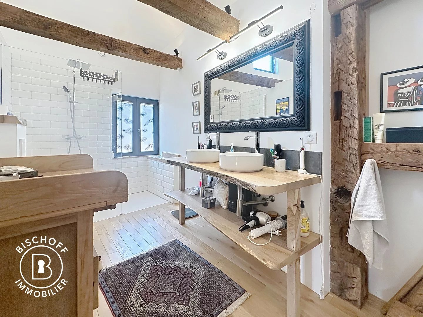 Découvrez cette magnifique maison alsacienne à colombages située dans le charmant village de Heidwiller. Alliant le charme de l'ancien et le confort moderne, cette propriété de 166 m² habitables et de 215 m2 utiles offre un cadre de vie exceptionnel pour toute la famille. Caractéristiques principales : 6 pièces spacieuses réparties sur 2 étages 2 salles de bains pour plus de confort Parquet massif dans toute la maison. Chauffage au sol par pompe à chaleur air/eau Isolation en biofibre Terrain de 300 m² avec jardin Garage intégré Intérieur : Le rez-de-chaussée comprend un vaste espace de vie ouvert sur plafond cathédrale offrant: un salon chaleureux doté d'une cheminée, idéal pour les soirées d'hiver. Les poutres apparentes et le parquet en bois massif confèrent à l'ensemble une atmosphère rustique et accueillante.Une belle cuisine entièrement équipée avec ilot central permettra de préparer de bon petits plats et facilitera votre quotidien. Et enfin un joli bureau pouvant office de chambre. En empruntant son magnifique escalier industriel en fer et noyer vous arriverez sur le 1er étage et sa mezzanine offrant une vue plongeante sur la pièce à vivre. A ce niveau vous disposerez de 2 chambres agréables et d'une salle de bains. Pour finir en apothéose une superbe suite parentale avec salle de bains privative. Extérieur : La façade en pierre et à colombages, typique de l'architecture alsacienne, est agrémentée de volets en bois. Un balcon bois avec ferronerie artisanale à l'étage. La propriété est clôturée par une jolie barrière en bois, offrant intimité et sécurité. Localisation : Située dans un quartier calme, cette maison est idéale pour les familles. L'école primaire se trouve à seulement 9 minutes à pied, et l'arrêt de bus 'HEIDWILLER - Église' est accessible en 7 minutes à pied, facilitant les déplacements quotidiens. Cette propriété unique combine le charme de l'ancien, le confort moderne et un emplacement pratique. Ne manquez pas cette opportunité de vivre dans une authentique maison alsacienne, alliant tradition, qualité de vie et design. Honoraires : 20 000 TTC (4 %) inclus charge acquéreur (500 000 hors honoraires) Pour plus de renseignements et visites contacter : BISCHOFF IMMOBILIER Coraline.