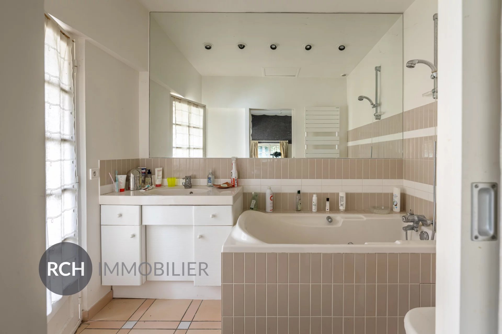 Maison d'environ 187 m2 sur un grand terrain de 3 719 m2 comprenant au rez-de-chaussée : entrée, séjour avec cheminée, salle à manger, cuisine indépendante, salle de douches et WC indépendants avec lave-mains. A l'étage : quatre chambres, lingerie, WC indépendants avec lave-mains et accès possible au grenier. Dépendance avec pièce de vie et salle de bains avec WC. Abri de jardin. Cave. Grenier. Terrasse. On aime : le nombre de chambres, le beau terrain arboré, les possibilités de rénovation. Référence : 3023G-LT.