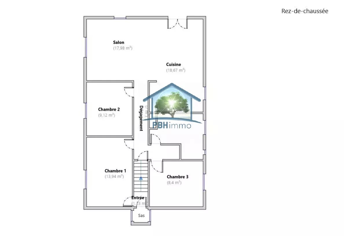 Le logement de type plain pied 82m² est composé, d'un sas d'entrée, d'un couloir, d'un vaste séjour ouvert sur une cuisine équipée d'environ 37m², une salle d'eau avec WC ainsi que 3 chambres.