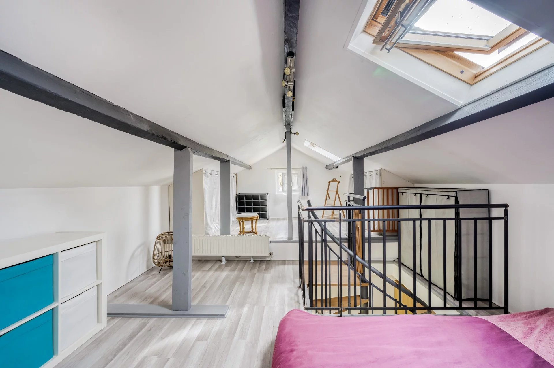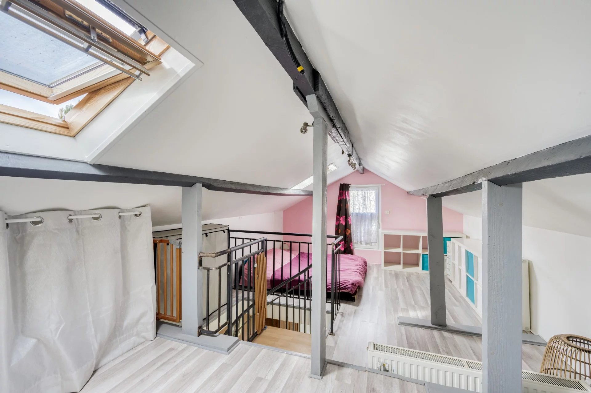 A l'étage, les combles ont été aménagés en chambre et dressing.