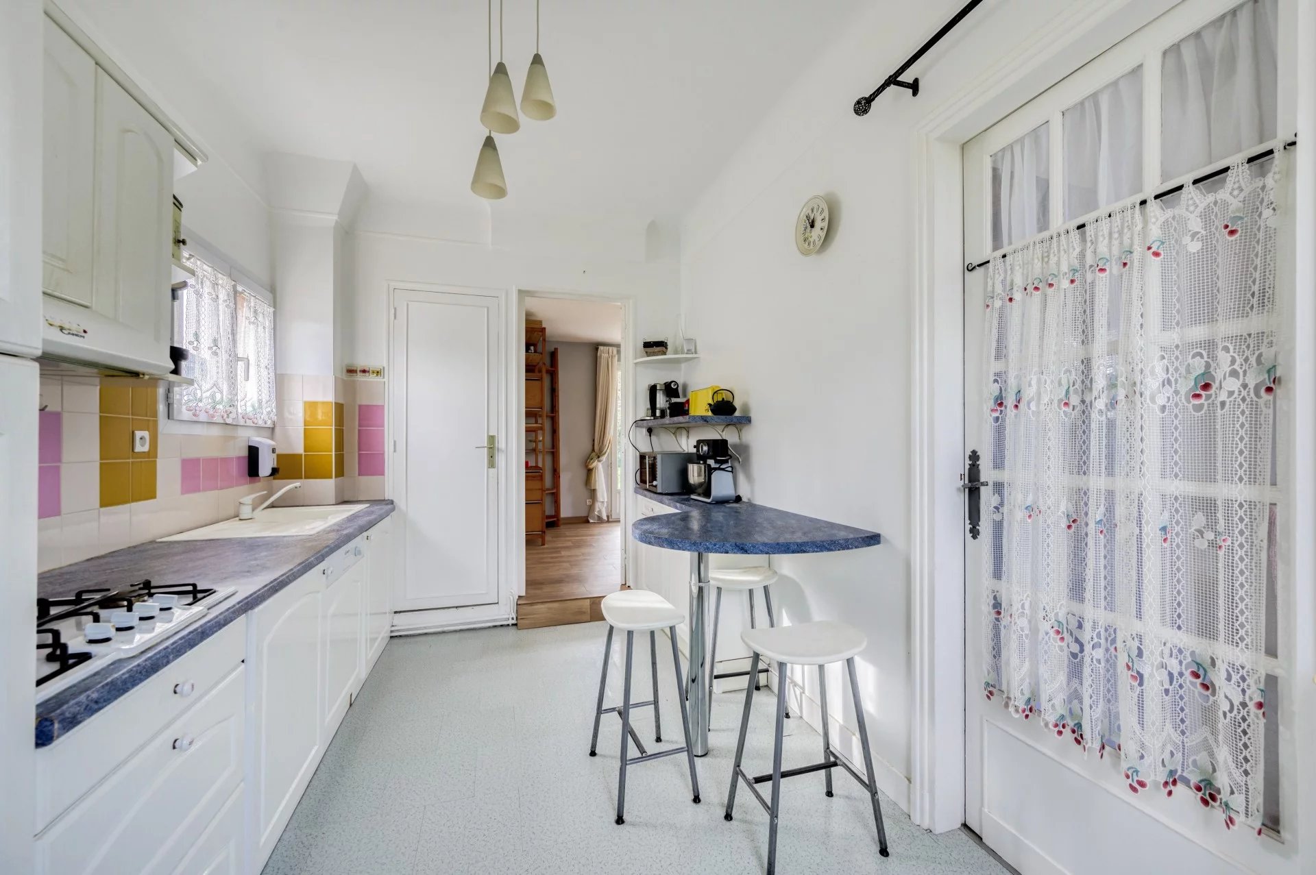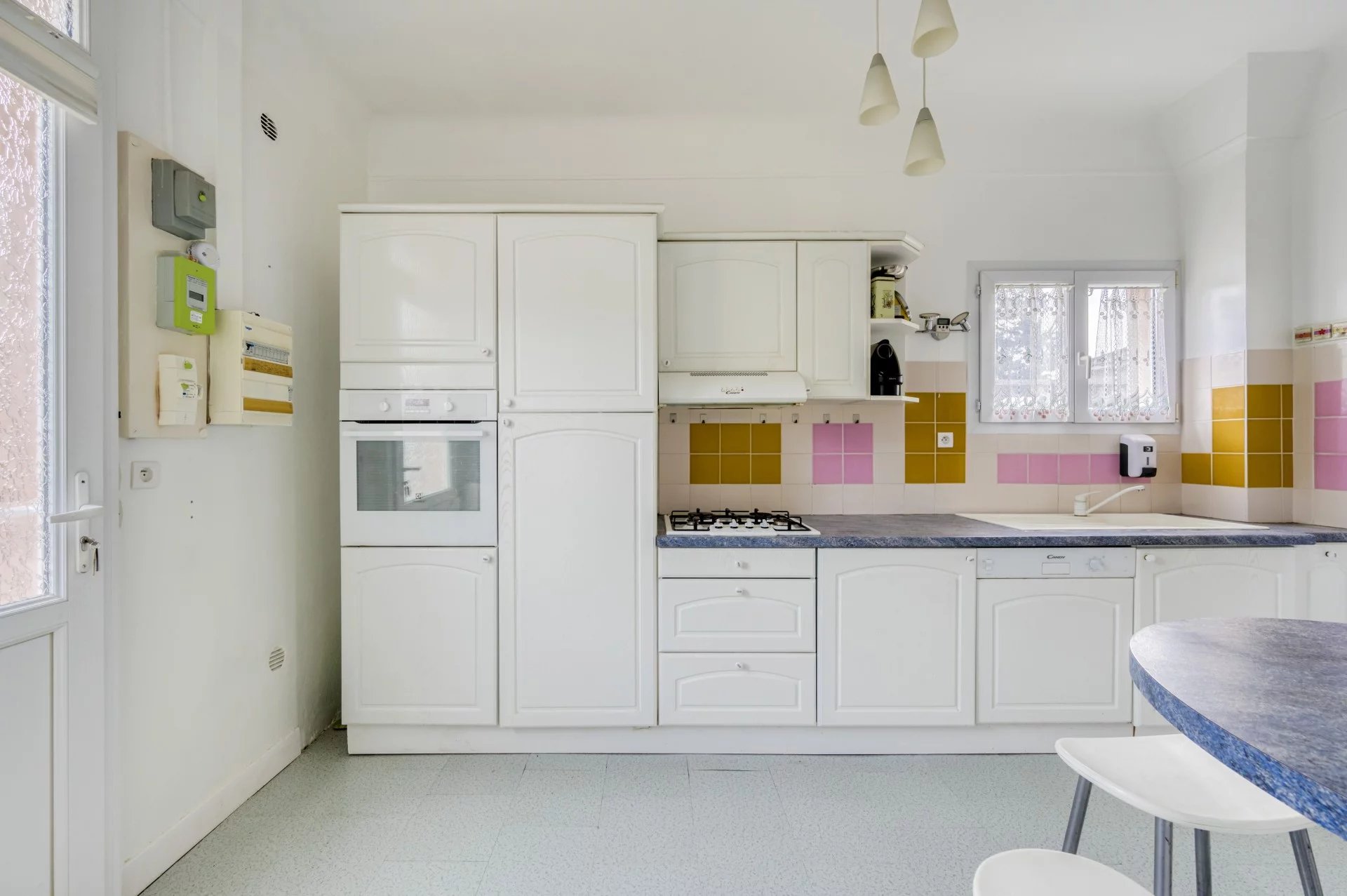 Reliée au tout à l'égout, chauffage gaz de ville, huisserie double vitrage.