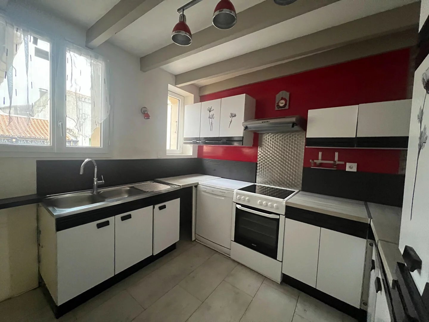 Maison ancienne en centre ville comprenant entrée séjour, cuisine équipée, salle d'eau avec wc,à l'étage 2 chambres mansardées,wc,cave,cour . A SAISIR !!!