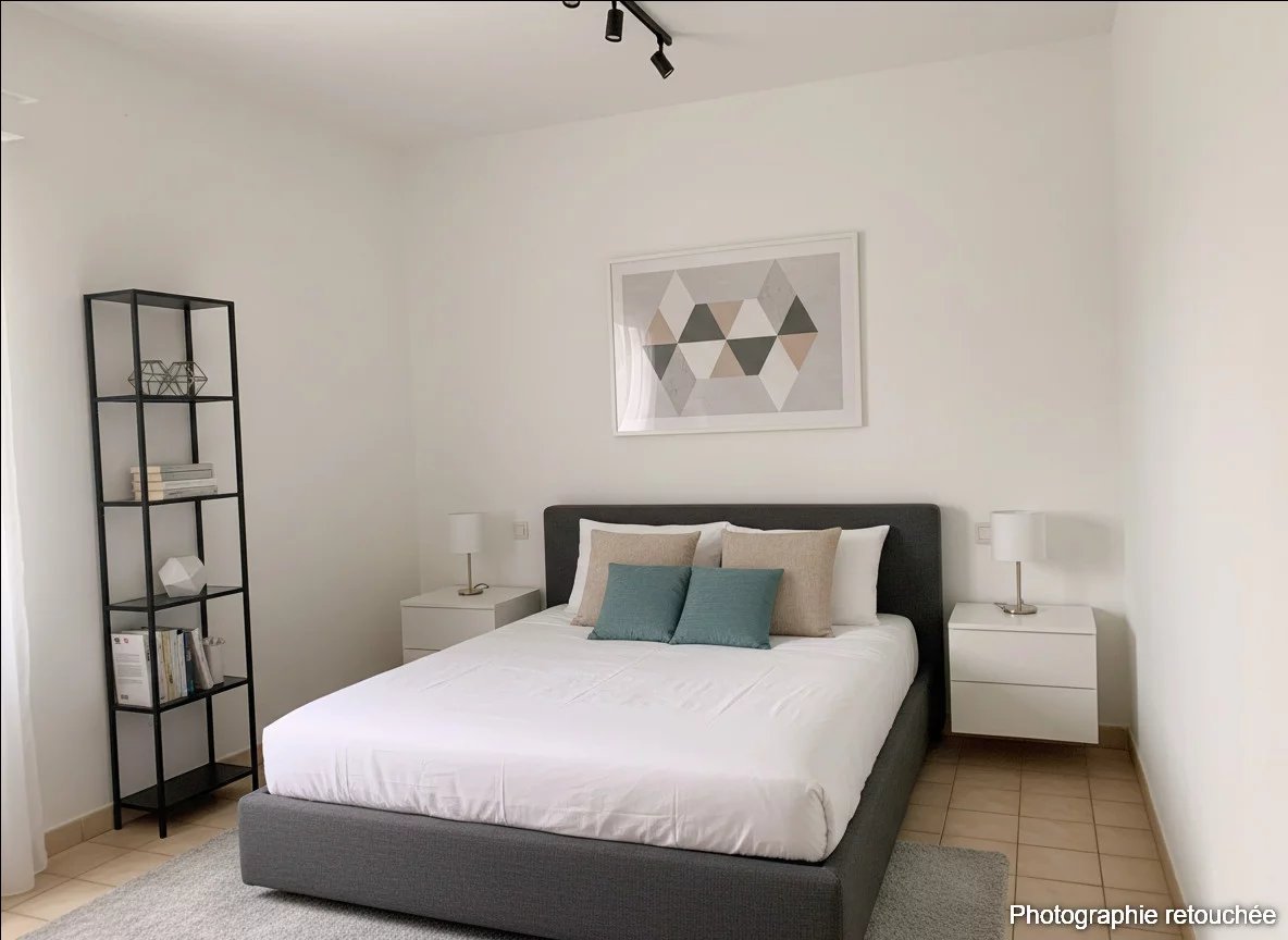 Elle offre une pièce de vie traversante avec cuisine aménagée semi-ouverte, deux chambres, une salle d’eau et un WC séparé.