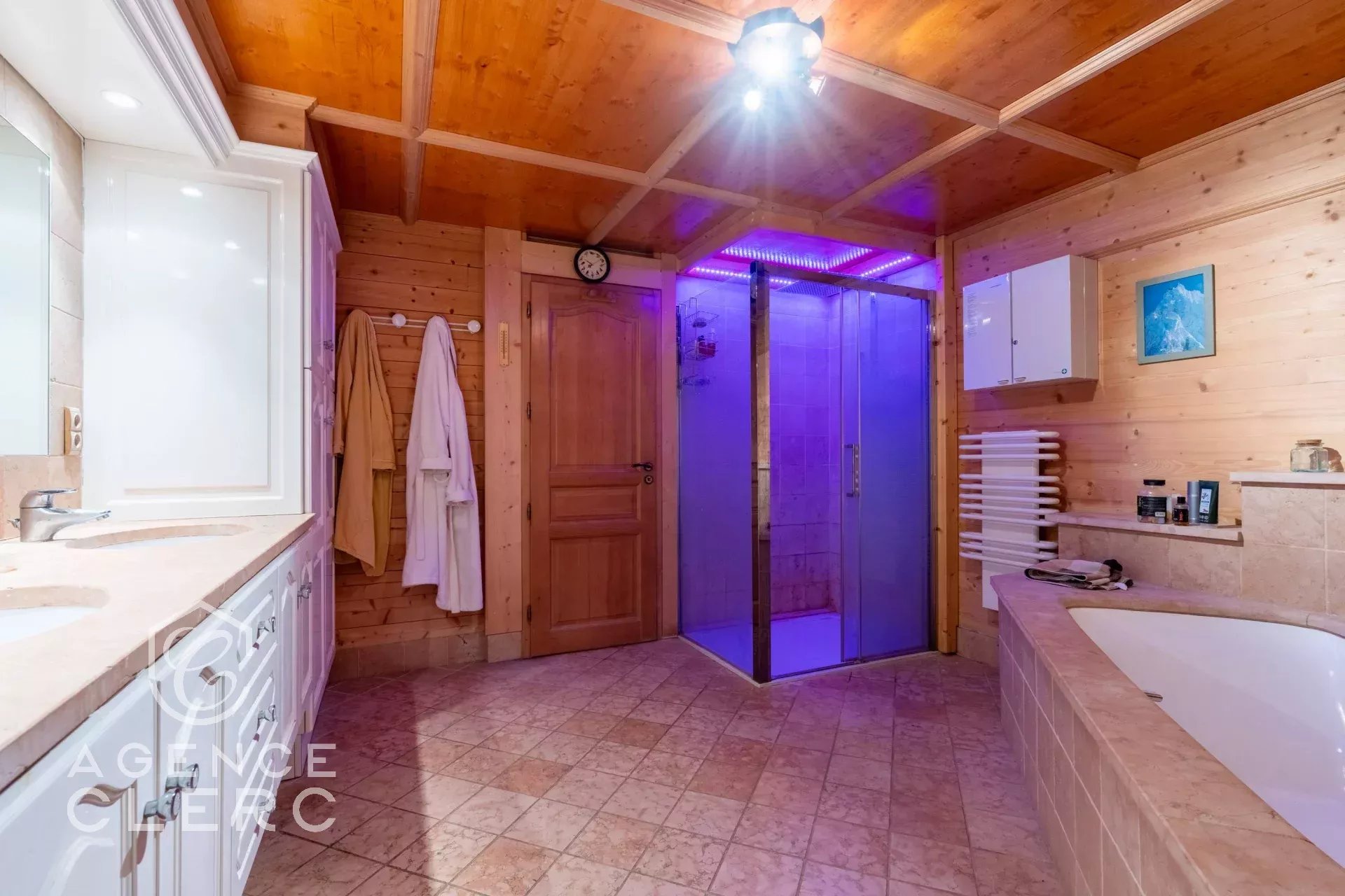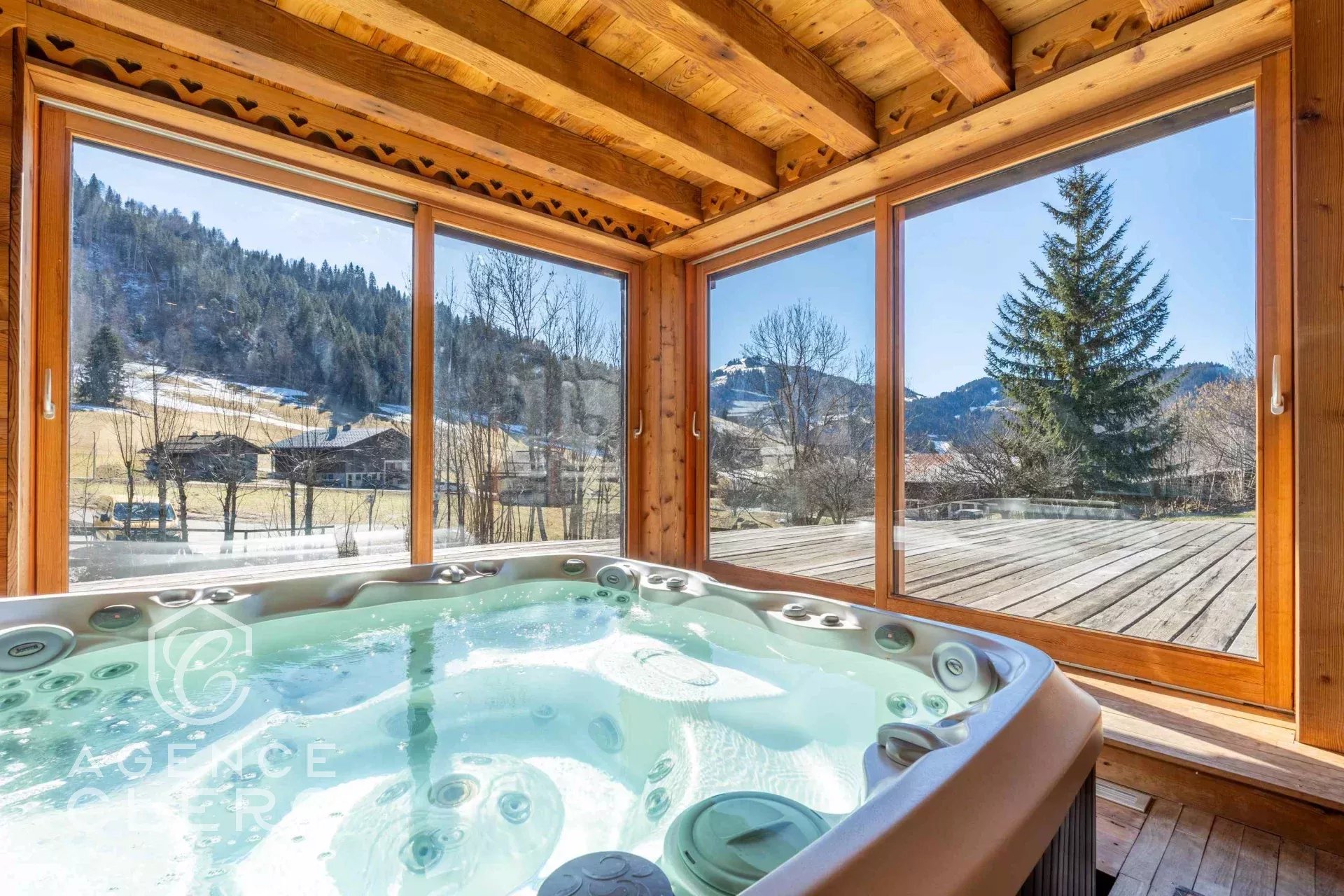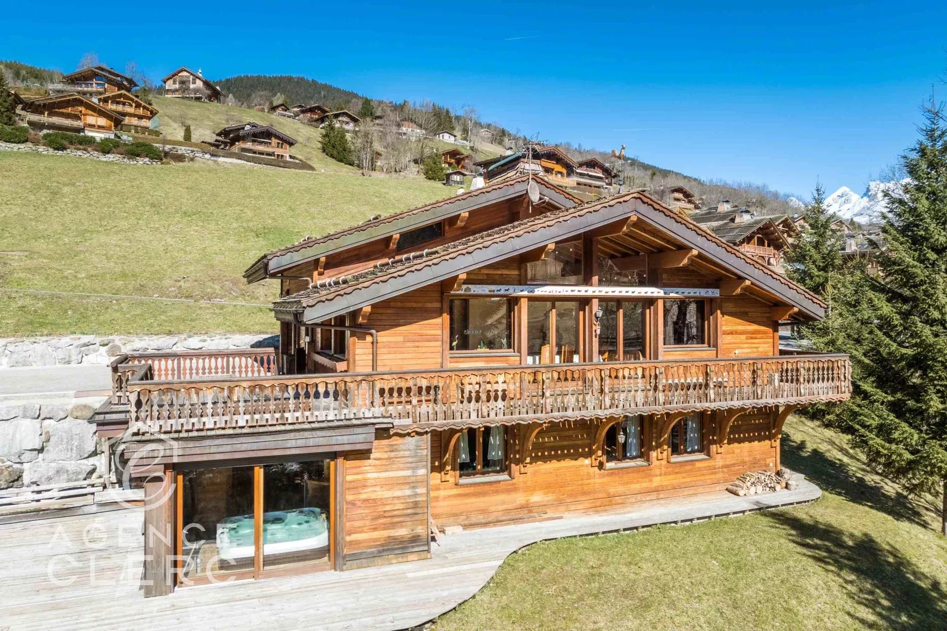 La Clusaz à 700 m du centre et 150 m de la piste du Var : superbe chalet de 311.85 m² surface plancher dont 260 m² habitables loi carrez, 4 chambres dont une suite de 40 m², une cuisine sur salle à manger salon cathédrale de 60 m², jacuzzi intérieur et sauna. Garage et parking couvert