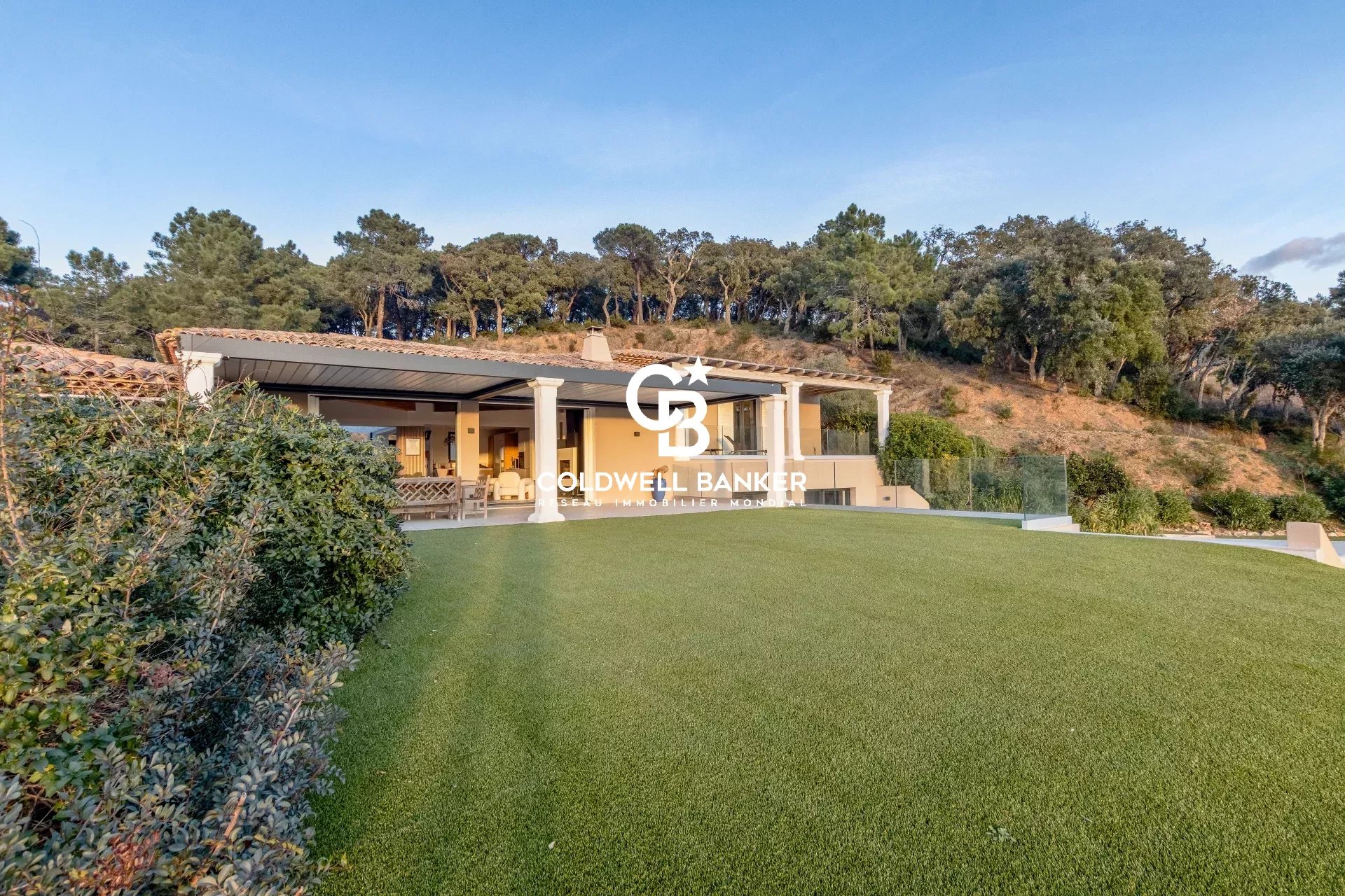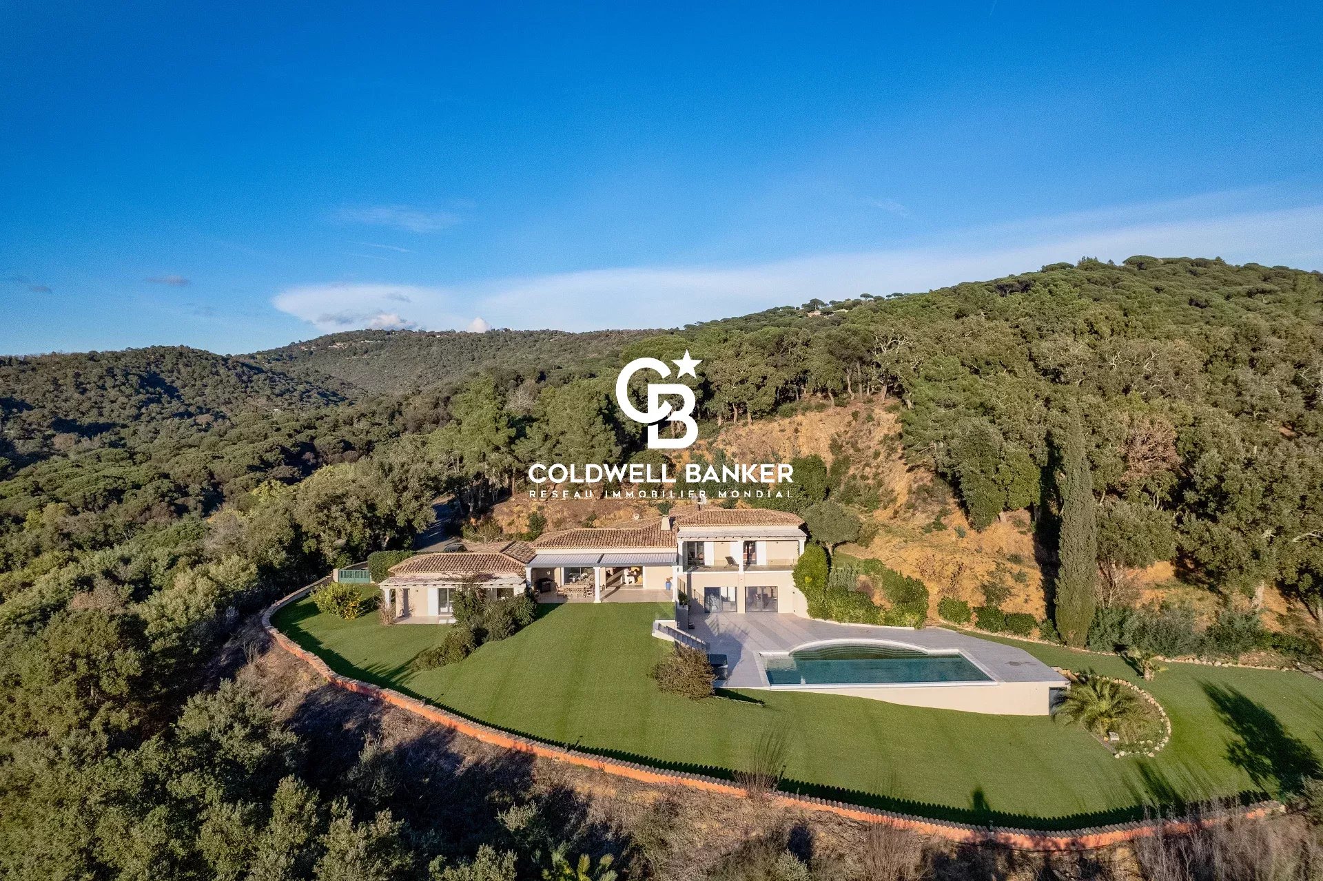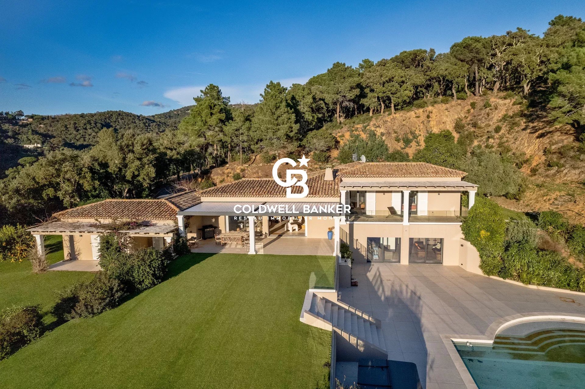 Sur les hauteurs les plus prisées de Gigaro, au sein d’un domaine privé d’environ 9 hectares, cette propriété d’exception jouit d’un calme absolu et d’une vue mer panoramique à couper le souffle sur les Îles d’Or Villa entièrement rénovée avec des prestations haut de gamme, elle offre des volumes baignés de lumière et de majestueuses baies vitrées à galandage effaçant la limite entre intérieur et horizon Une cuisine sur-mesure parfaitement équipée avec cave à vin, double réfrigérateur et buanderie s’ouvre sur une élégante salle à manger soulignée par des verrières, tandis que le salon avec cheminée se prolonge vers de vastes terrasses aménagées d’une pergola bioclimatique. Côté nuit, cinq chambres dont deux suites parentales, complétées par un espace dédié aux enfants avec dortoir, salle d’eau et zone de jeux.