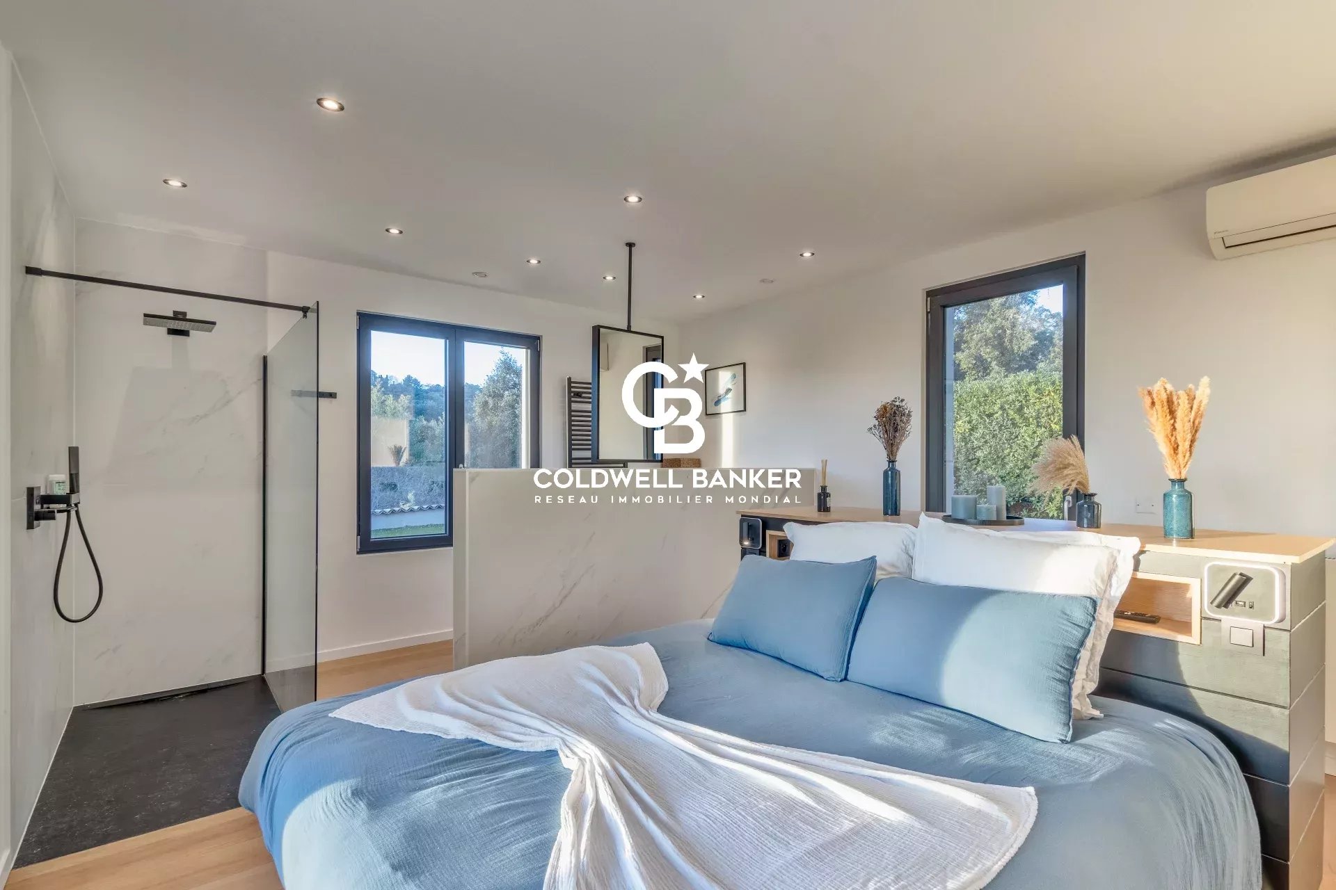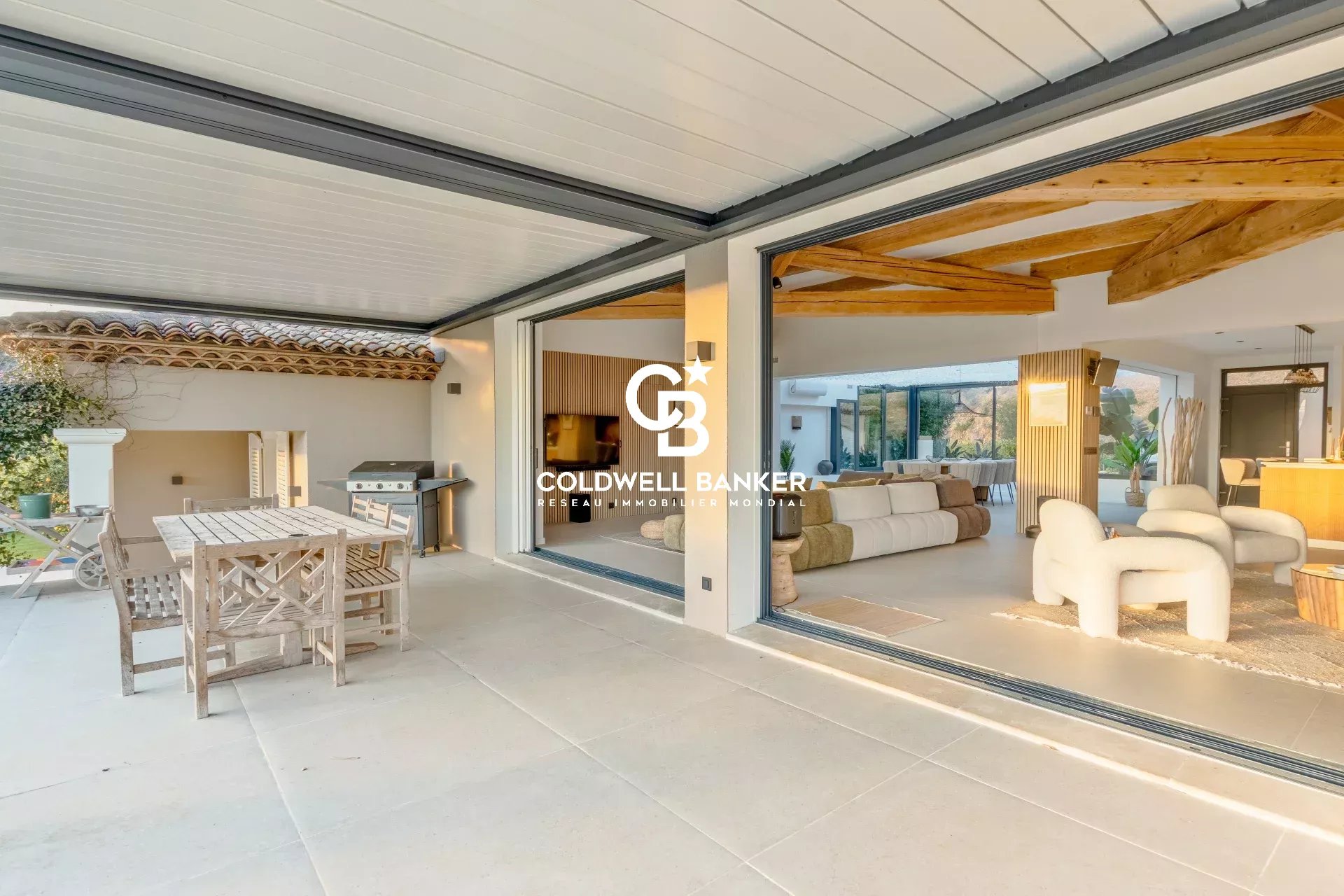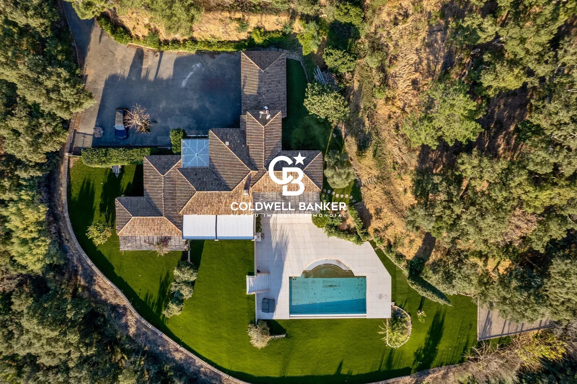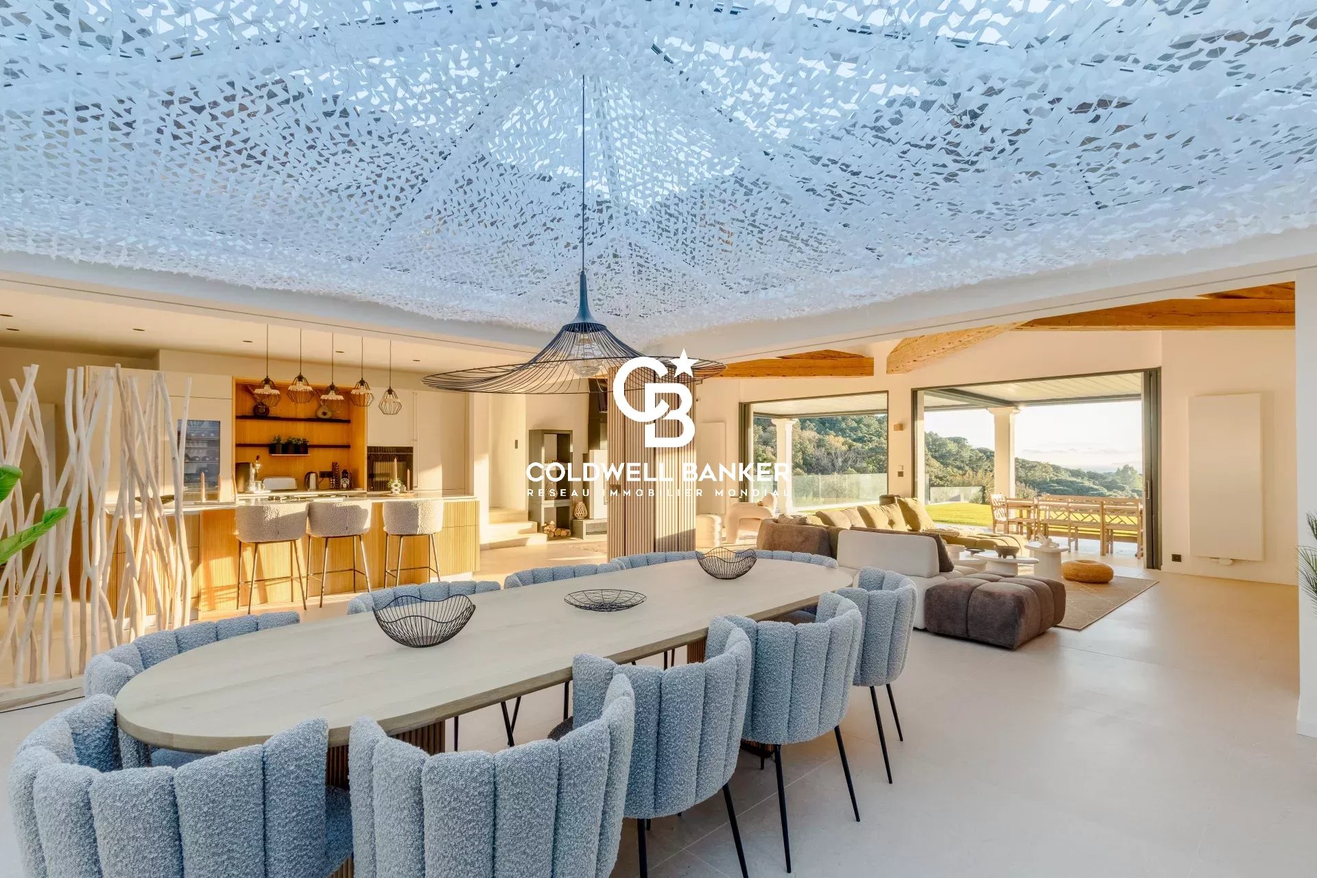 Sur les hauteurs les plus prisées de Gigaro, au sein d’un domaine privé d’environ 9 hectares, cette propriété d’exception jouit d’un calme absolu et d’une vue mer panoramique à couper le souffle sur les Îles d’Or Villa entièrement rénovée avec des prestations haut de gamme, elle offre des volumes baignés de lumière et de majestueuses baies vitrées à galandage effaçant la limite entre intérieur et horizon Une cuisine sur-mesure parfaitement équipée avec cave à vin, double réfrigérateur et buanderie s’ouvre sur une élégante salle à manger soulignée par des verrières, tandis que le salon avec cheminée se prolonge vers de vastes terrasses aménagées d’une pergola bioclimatique. Côté nuit, cinq chambres dont deux suites parentales, complétées par un espace dédié aux enfants avec dortoir, salle d’eau et zone de jeux.