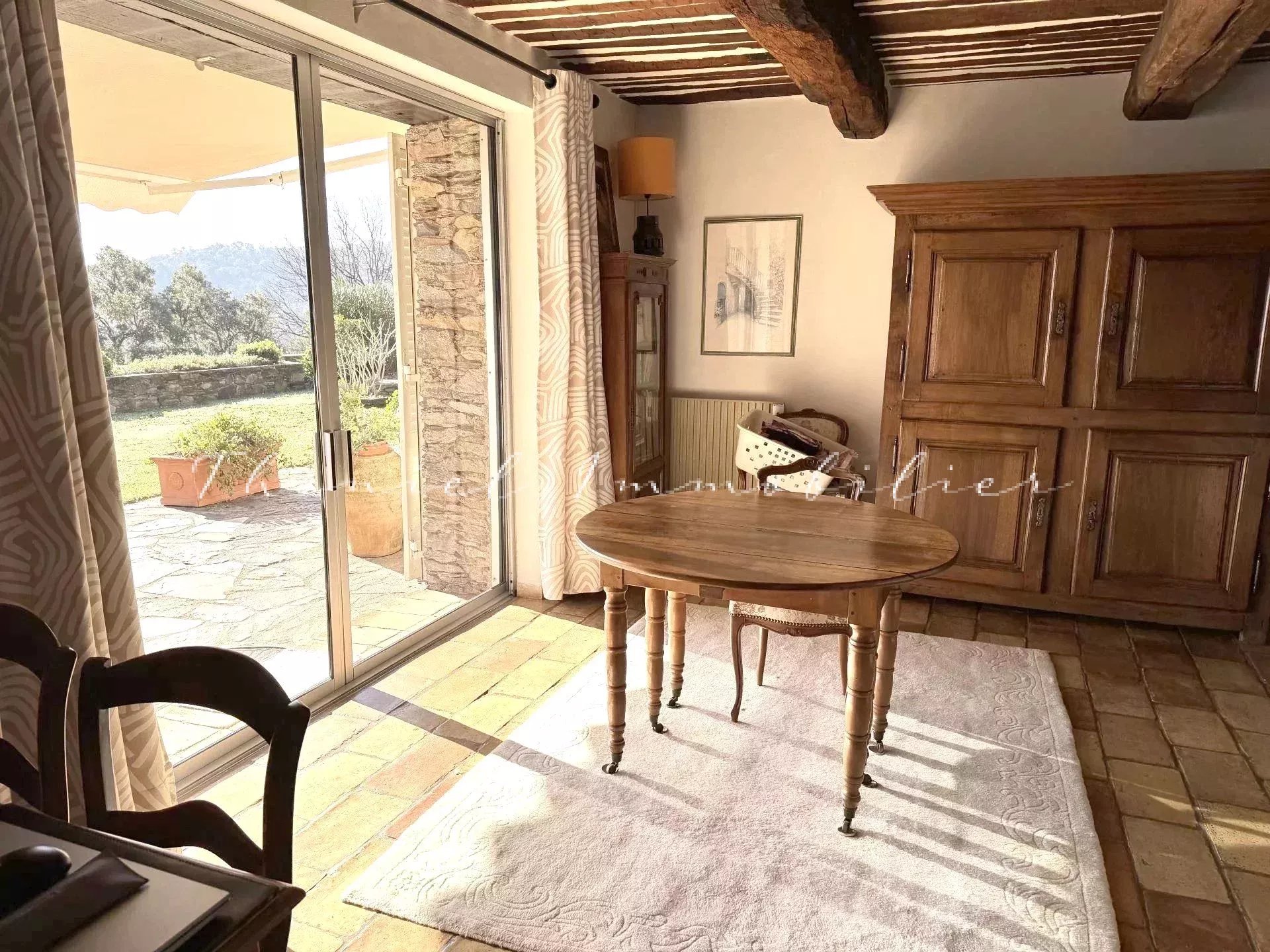 Maison en pierre sur un beau terrain de 7115 m2 offrant une très belle vue sur la campagne. D'une surface de 156 m2 elle se compose d'une entrée, vestiaire, toilettes, cuisine équipée, salle à manger, séjour avec cheminée, une chambre avec salle de bains/wc et une deuxième chambre plus petite. En annexe : un appartement de 2 pièces.