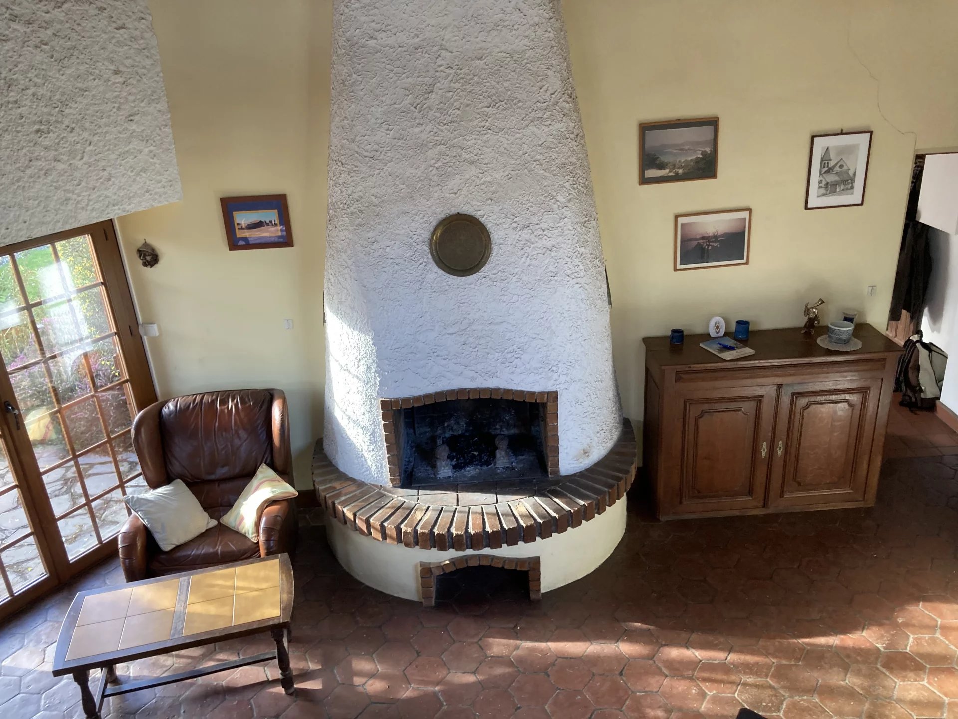 Le rez de chaussée dessert une cuisine, salle à manger/séjour, un salon, une salle de douche et un toilette. L'intérieur, chaleureux et accueillant, comprend une belle cheminée qui ajoute une touche d'authenticité à la propriété.