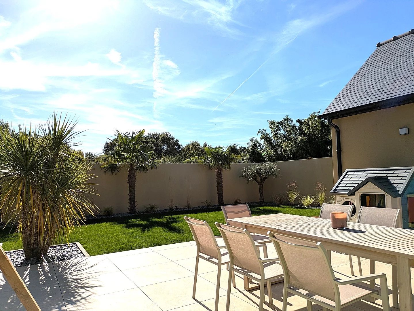 Le jardin joliment arboré ne demande que peu d'entretien. Le terrain est entièrement clos et sans vis-à-vis.