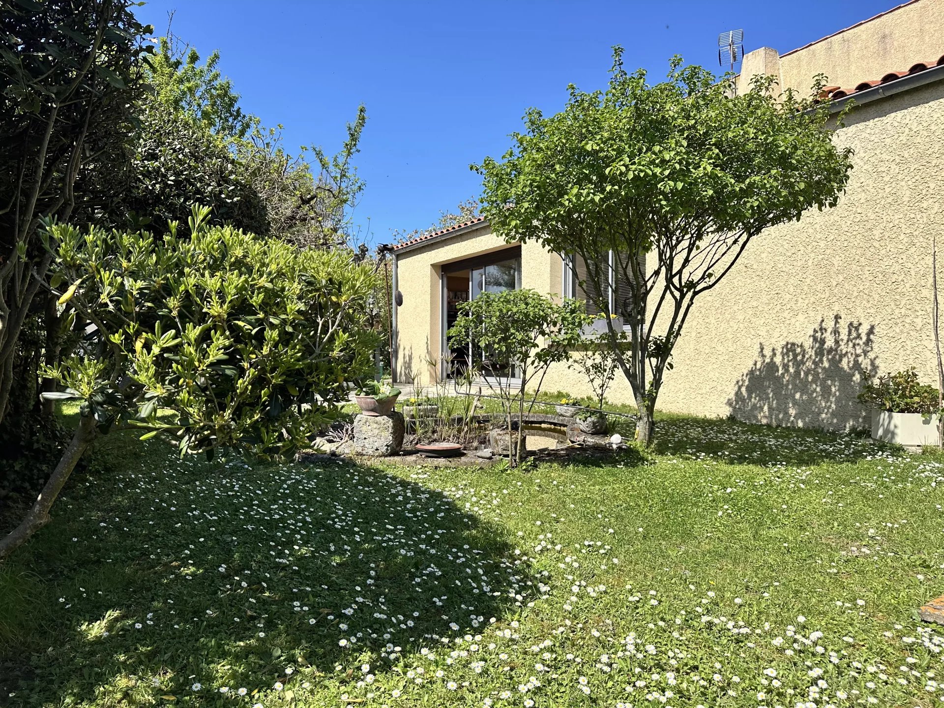 Nichée dans une impasse, bâtie sur une parcelle arborée et fleurie de plus de 600m2 venez découvrir cette maison non-mitoyenne de 138m2 des années 80.