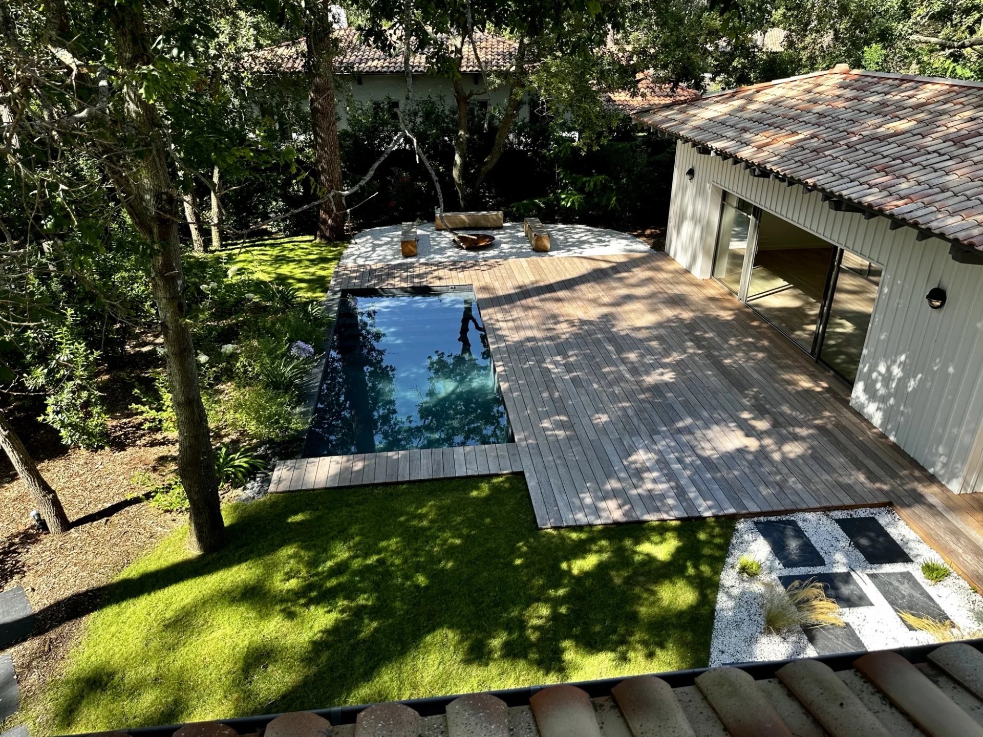 Découvrez cette somptueuse villa Gaume située au Pyla, un secteur privilégié. Elle se trouve au cœur d'un terrain paysagé de 1750 m², avec la plage à moins de 50 mètres accessible à pied.