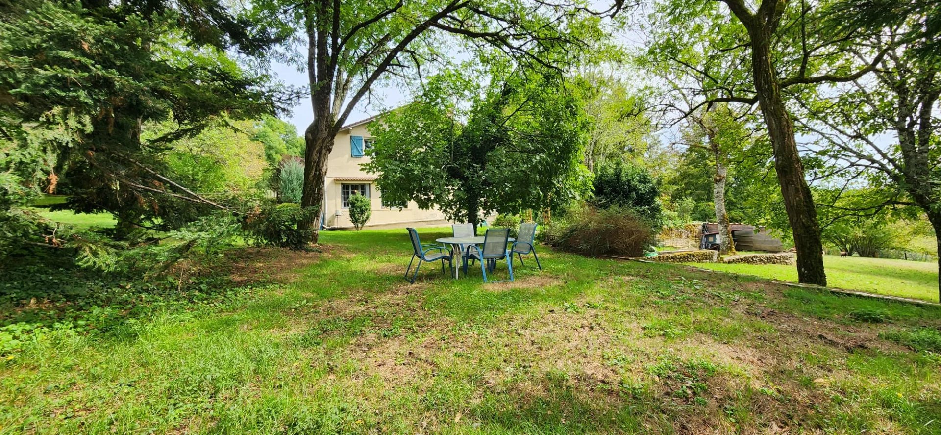Le terrain, mêlant prairies et espaces boisés, est structuré par un ruisseau et une source naturelle, contribuant à l'équilibre du lieu. L'ensemble se situe à quelques minutes de Bergerac et de ses accès, tout en conservant une réelle sensation d'isolement maîtrisé.